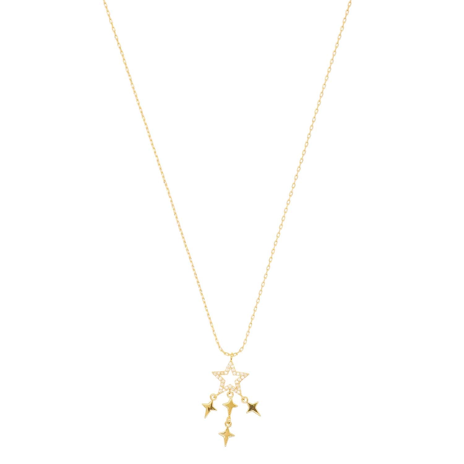 Delight in a sprinkle of magic with this playful necklace from the Constellation Collection. A dazzling Czech crystal star sparkles alongside tiny dangling stars, adding a touch of whimsy to your look. Suspended on a delicate 16-inch chain with a 2-inch extender, it’s perfectly sized to twinkle with every move—whether you’re out and about or dressing up. Choose your shine: radiant 14K gold for everyday stardust.