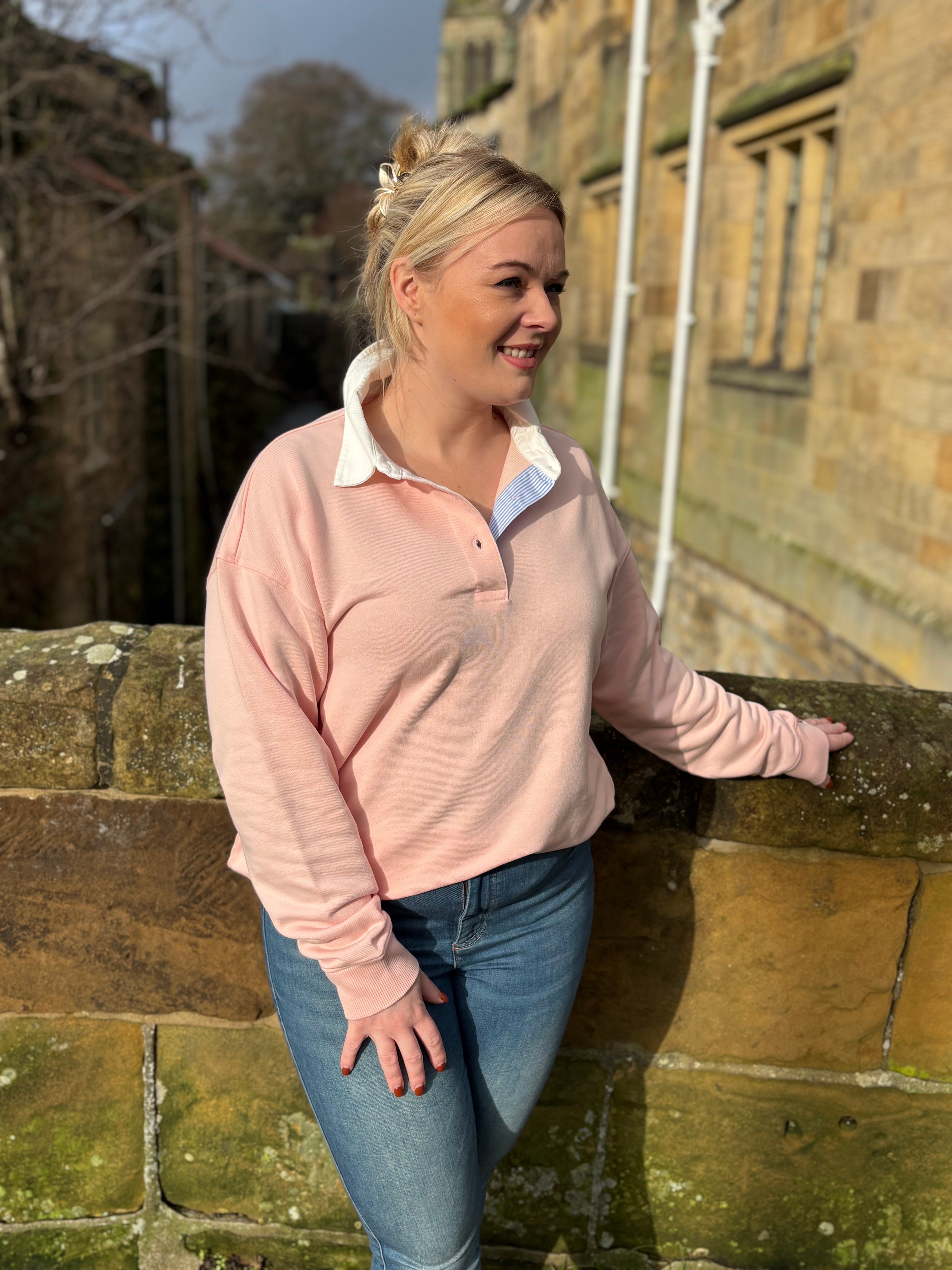 Embrace casual comfort with our Rugger Sweatshirt in a warm apricot pink. This relaxed-fit ladies' top combines effortless style with everyday wearability, perfect for layering or wearing solo. The soft fabric feels wonderful against your skin, while the classic rugby-inspired design adds character to your wardrobe. Whether you're heading out for coffee or settling in for a cosy day at home, this versatile piece keeps you looking put-together and feeling great.