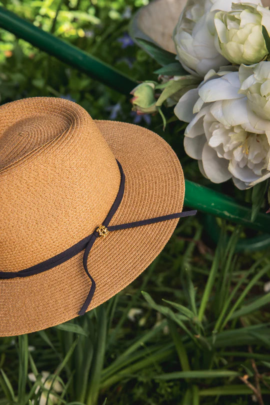 Elevated for the season ahead, the Francesca Hat returns with refined detailing and timeless appeal. This iconic silhouette is now finished with a suede micro ribbon, accented with a branded heraldic bead, and an internal sweatband. A subtle racing green bow adds a modern twist, while the signature HC pin nods to Holland Cooper’s heritage of considered design. Effortlessly chic and endlessly versatile, the Francesca Hat is the perfect finishing touch to both countryside ensembles and city-ready looks—an accessory reimagined for contemporary elegance.