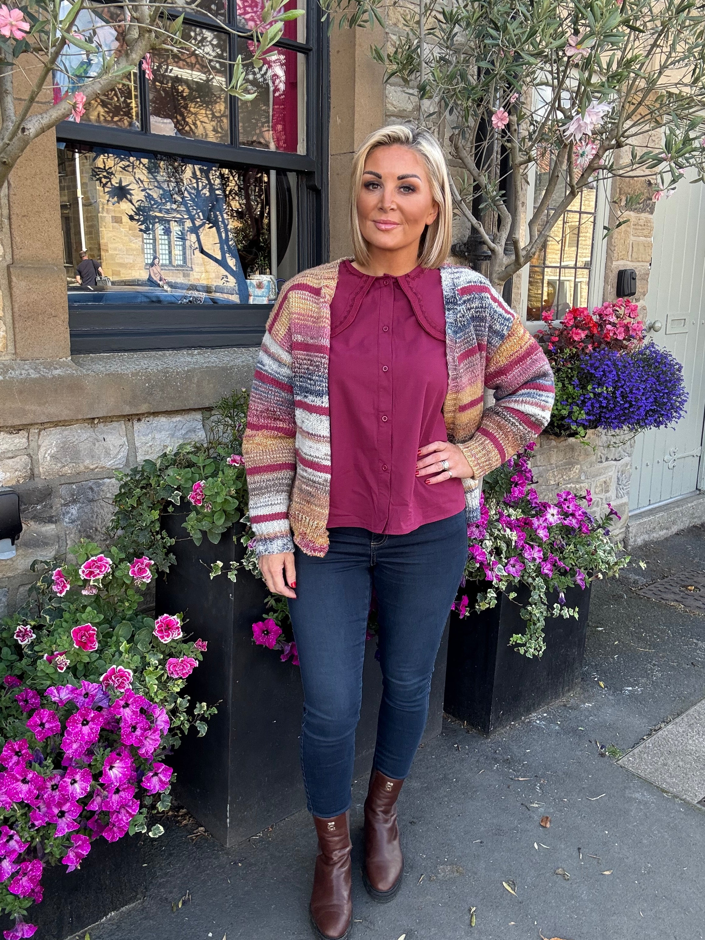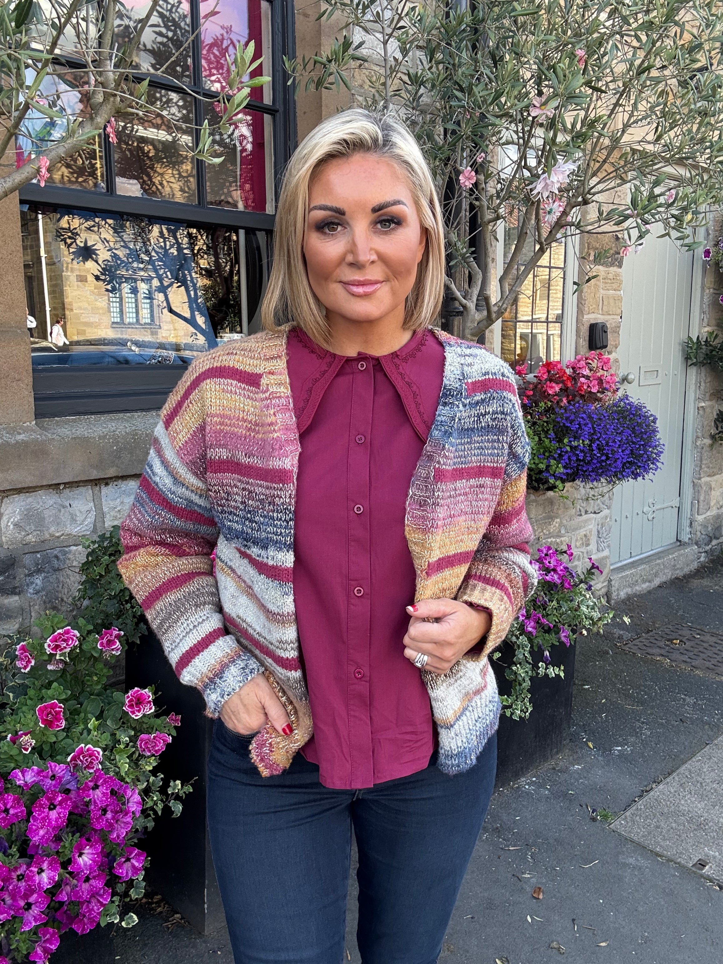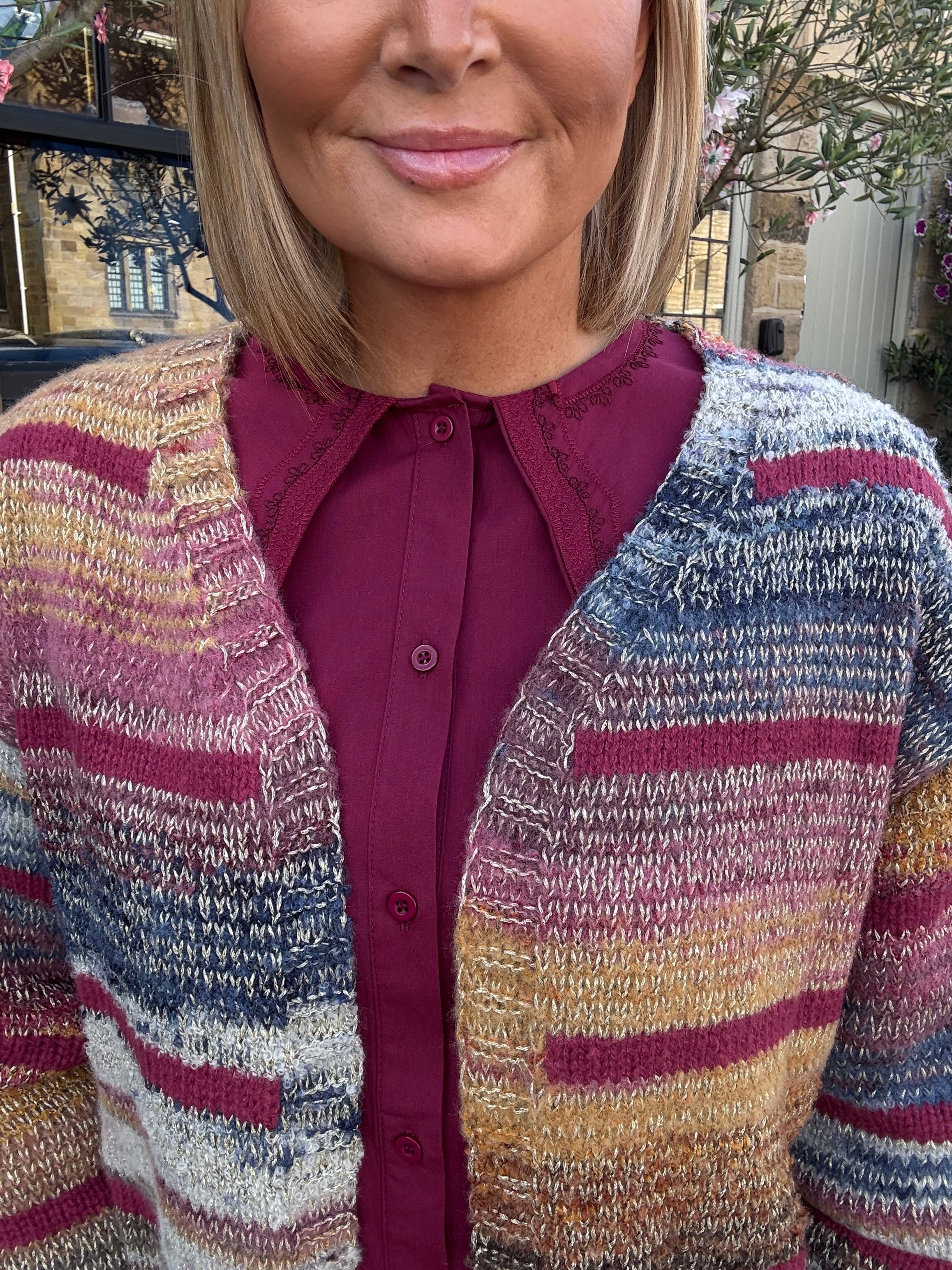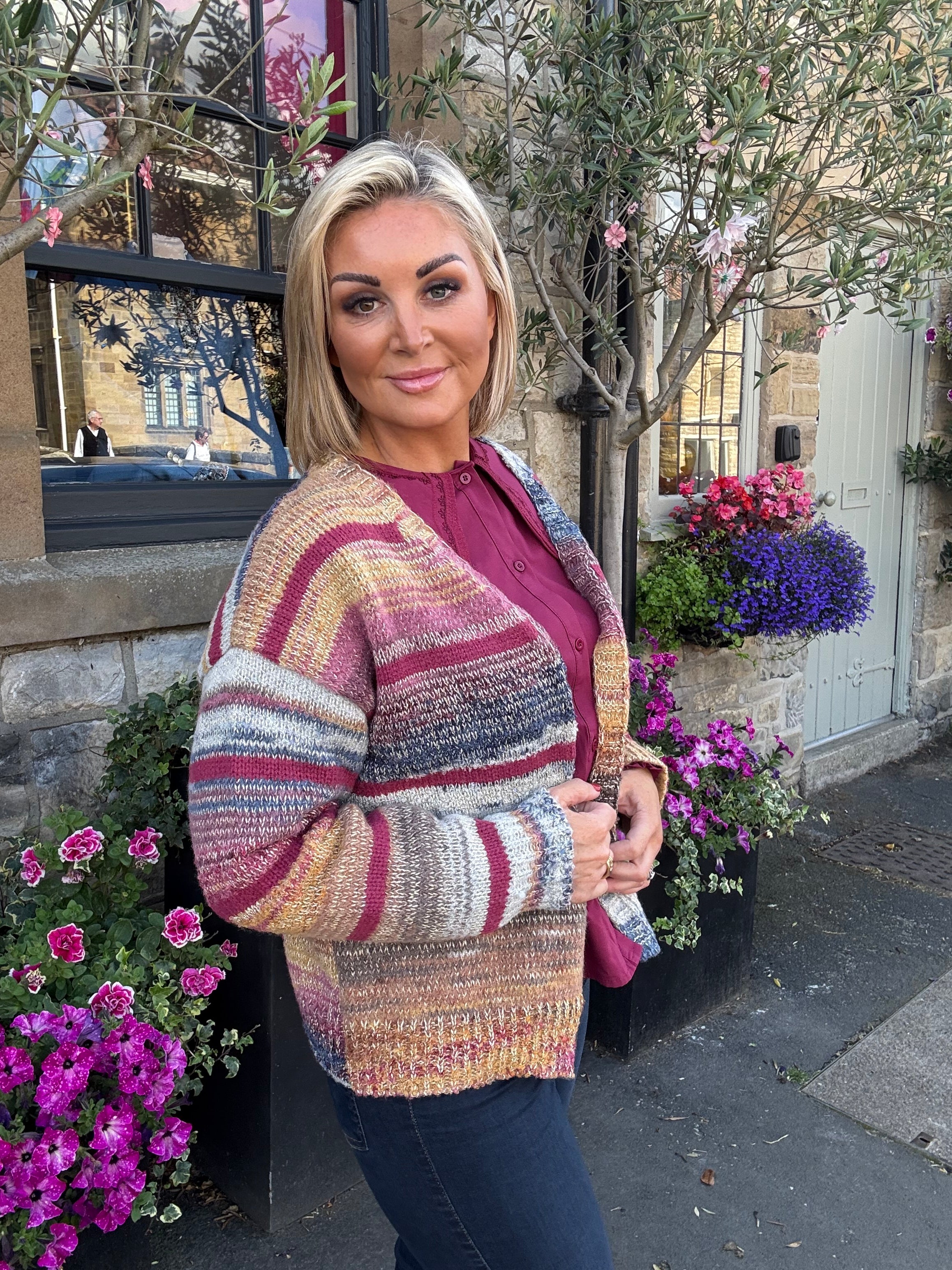 Brodie Wool Blend Cardigan in Multi/Pink Striped