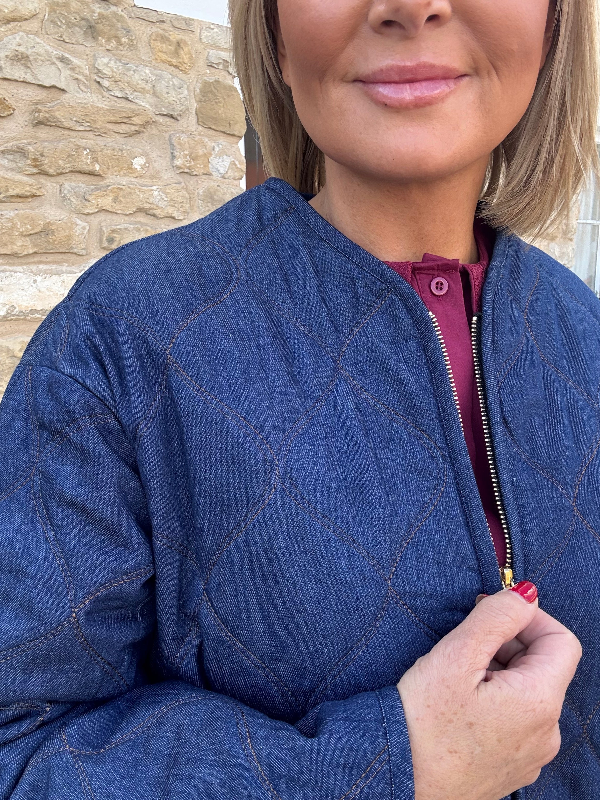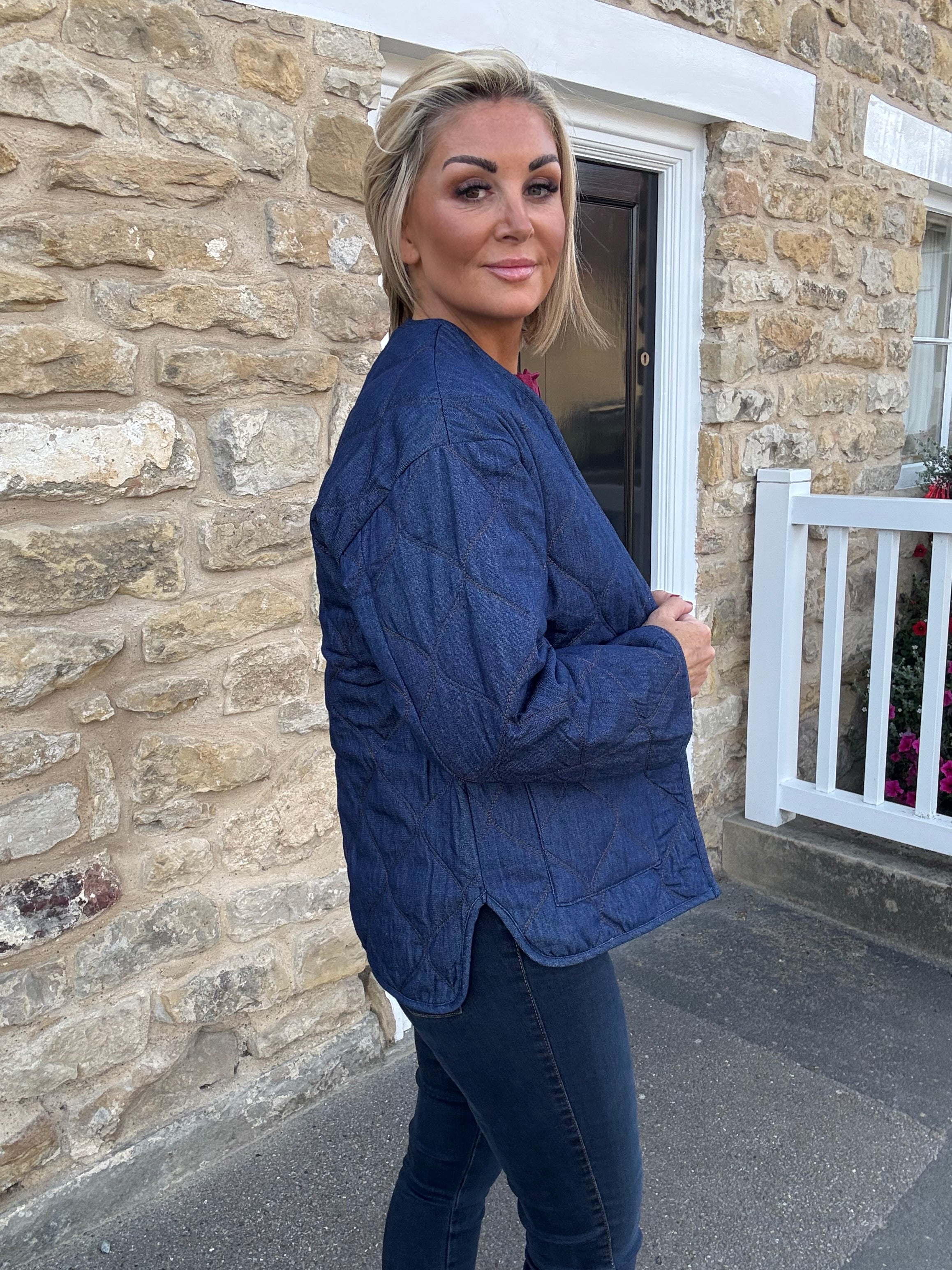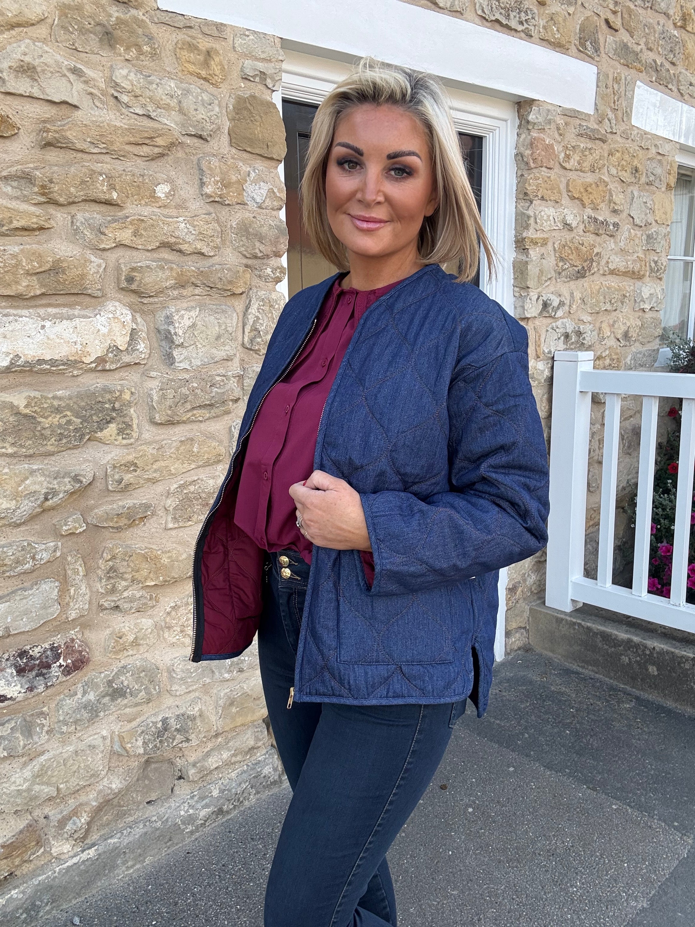 The Lori Quilted Jacket in Dark Blue Denim offers a refined blend of classic denim style with modern quilted warmth. Crafted to provide lightweight insulation, it ensures comfort without bulk, making it ideal for layering in cooler weather. Its durable construction and timeless dark blue hue deliver both practicality and lasting style, perfect for those seeking a versatile jacket that performs expertly in everyday wear.