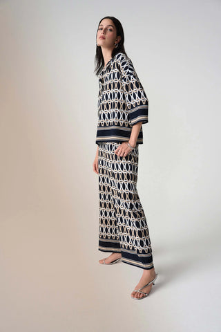 Silky Knit And Satin Wide Leg Jumpsuit With Contrast Bodice And Neck Bow Tie