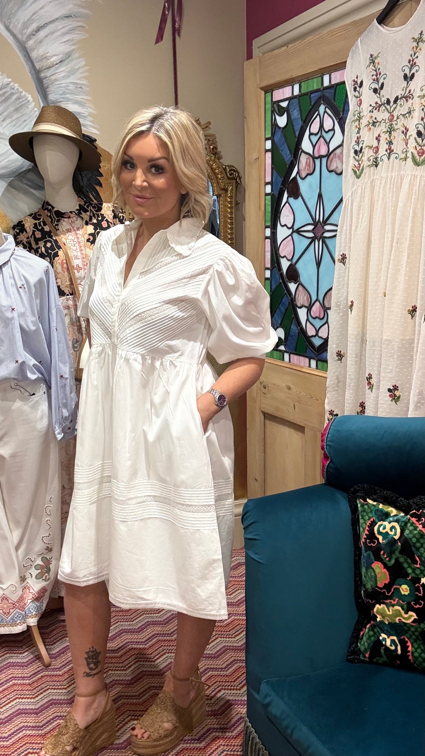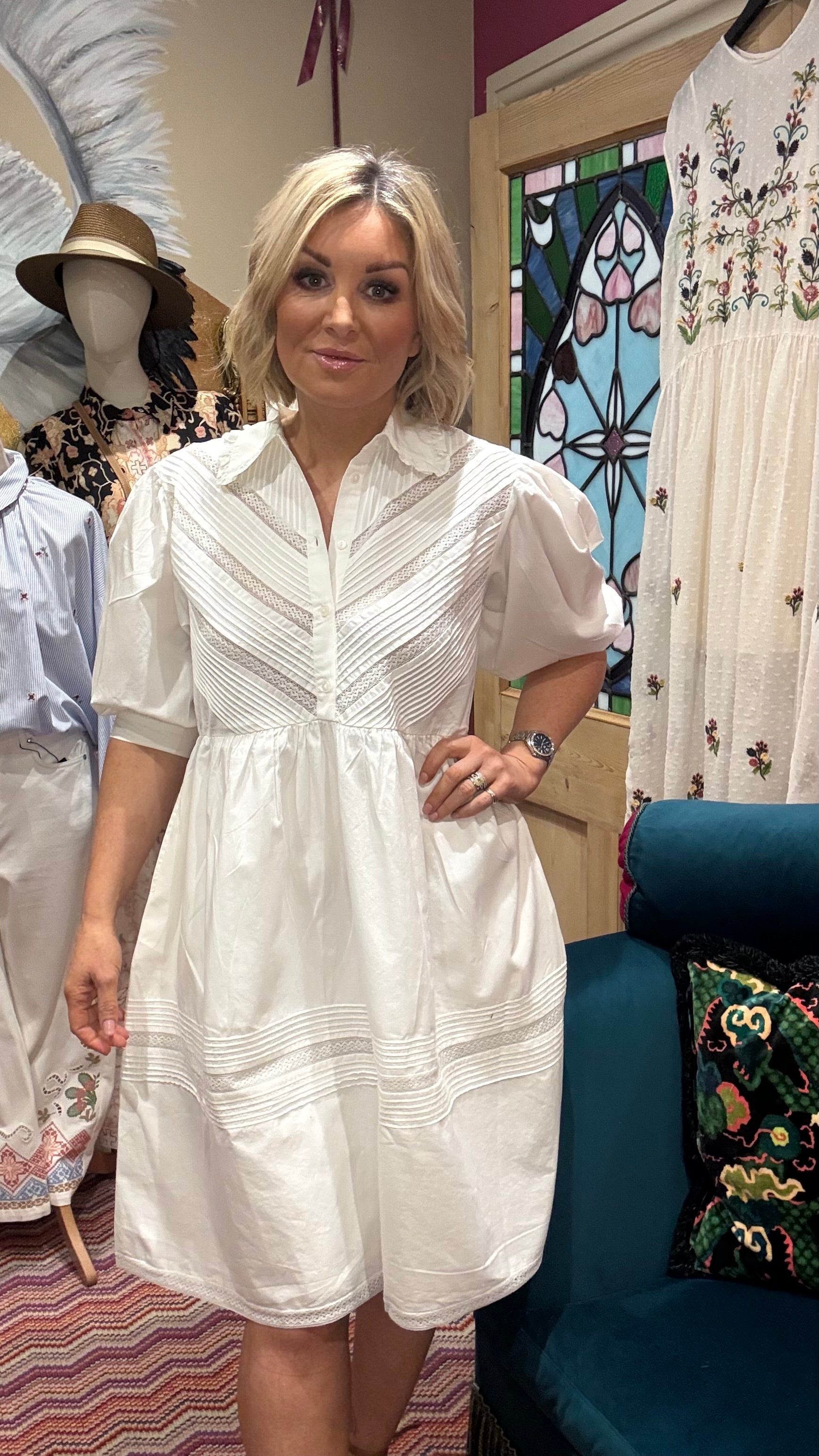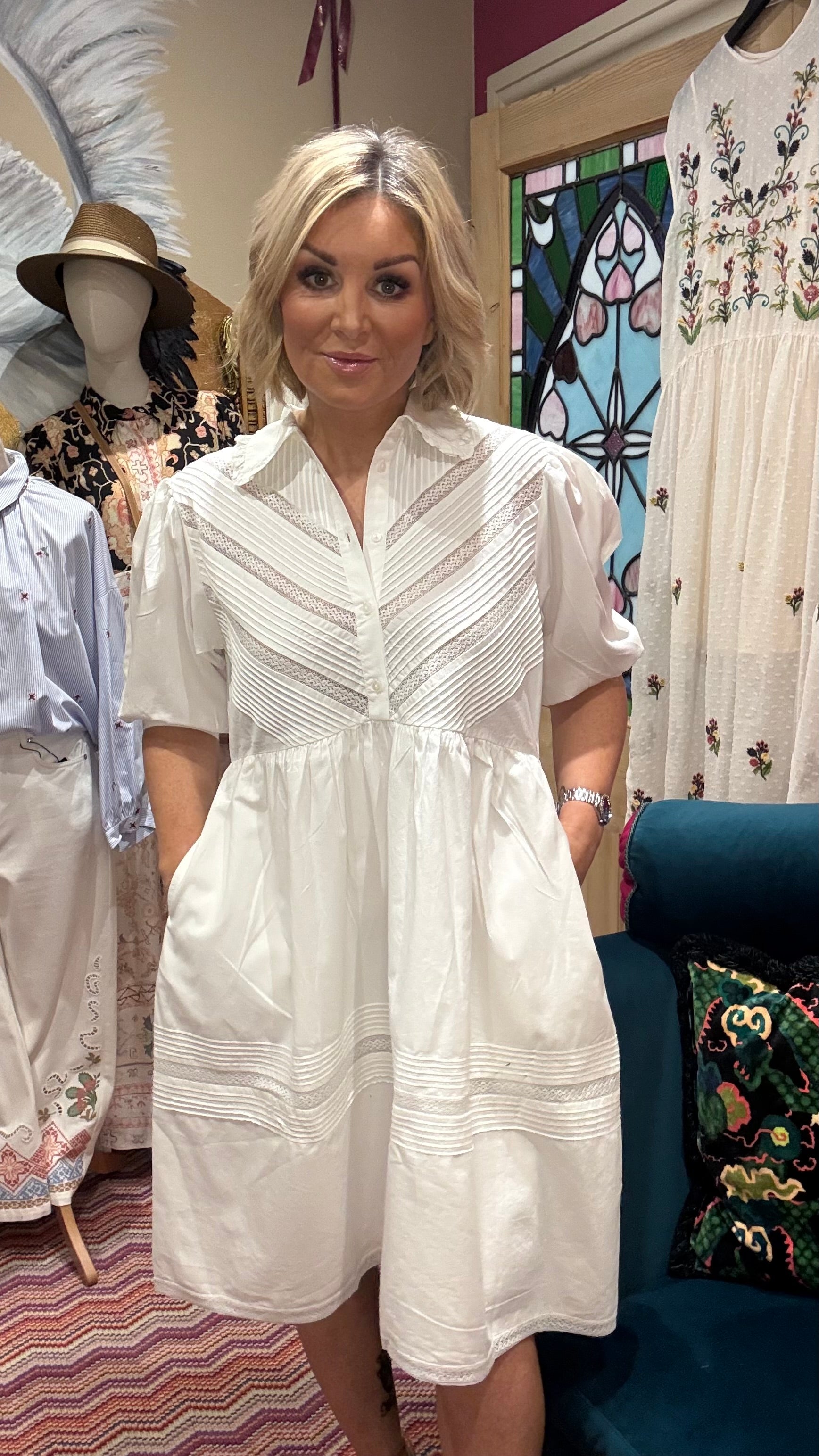 # ADELE - PINTUCK DRESS Elevate your everyday wardrobe with the Adele Pintuck Dress, a timeless piece that combines understated elegance with modern comfort. The signature pintuck detailing adds sophisticated texture and visual interest, creating a flattering silhouette that works beautifully for both casual outings and polished occasions. Crafted for versatility, this dress pairs effortlessly with trainers for a relaxed weekend look or heels for an evening out. A wardrobe essential that brings refined style to every moment.