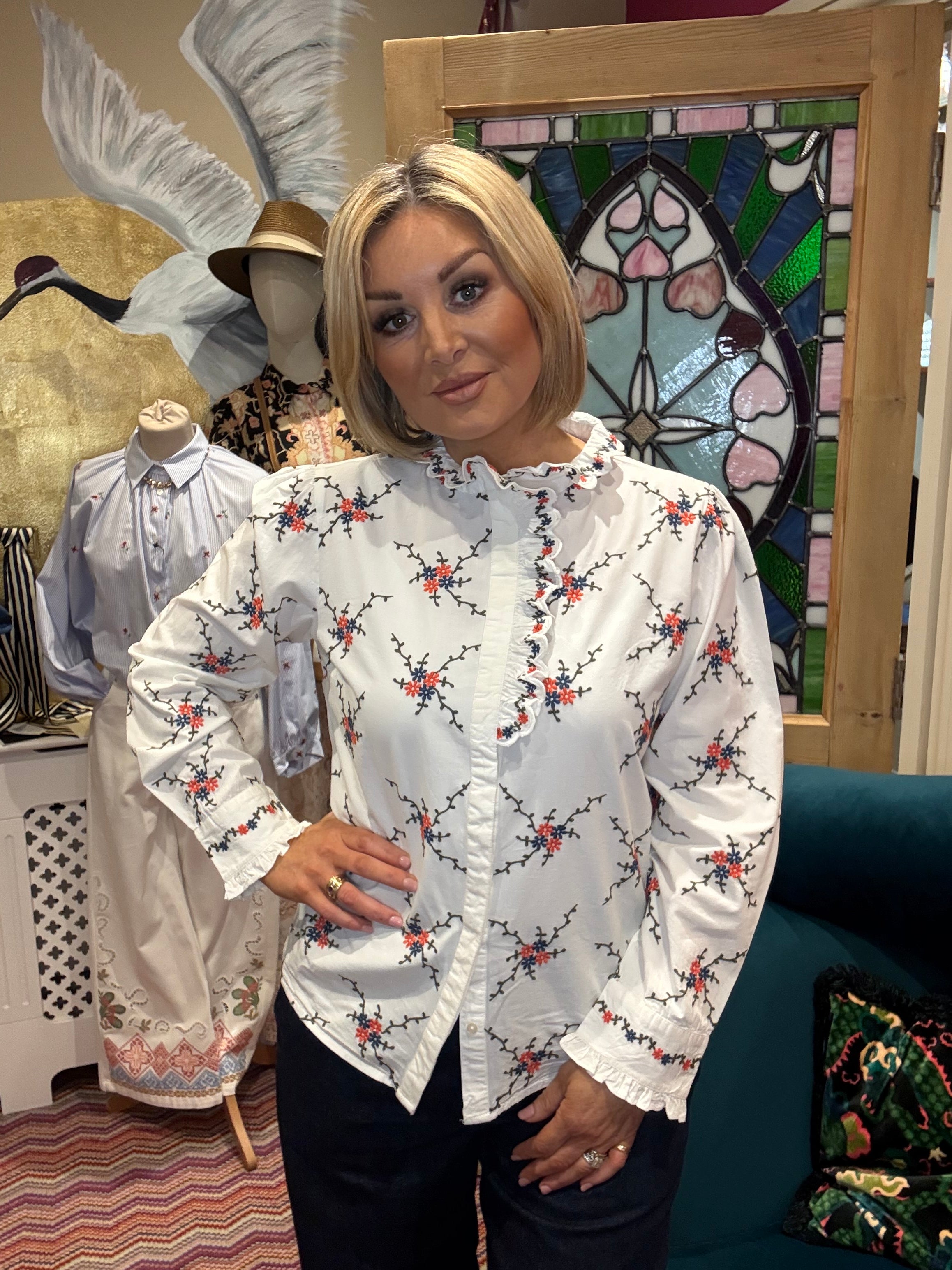# ELEANOR - EMBROIDERY Discover the timeless elegance of Eleanor, a beautifully embroidered piece that brings handcrafted artistry into your everyday style. Each intricate stitch tells a story of skilled craftsmanship, creating a unique garment that stands out from the ordinary. Perfect for those who appreciate fine details and quality construction, Eleanor combines classic design with contemporary appeal. Whether you're dressing up for a special occasion or elevating your casual wardrobe, this embroidered treasure offers versatility and charm that lasts. Invest in a piece that celebrates the art of traditional needlework with modern sensibility.