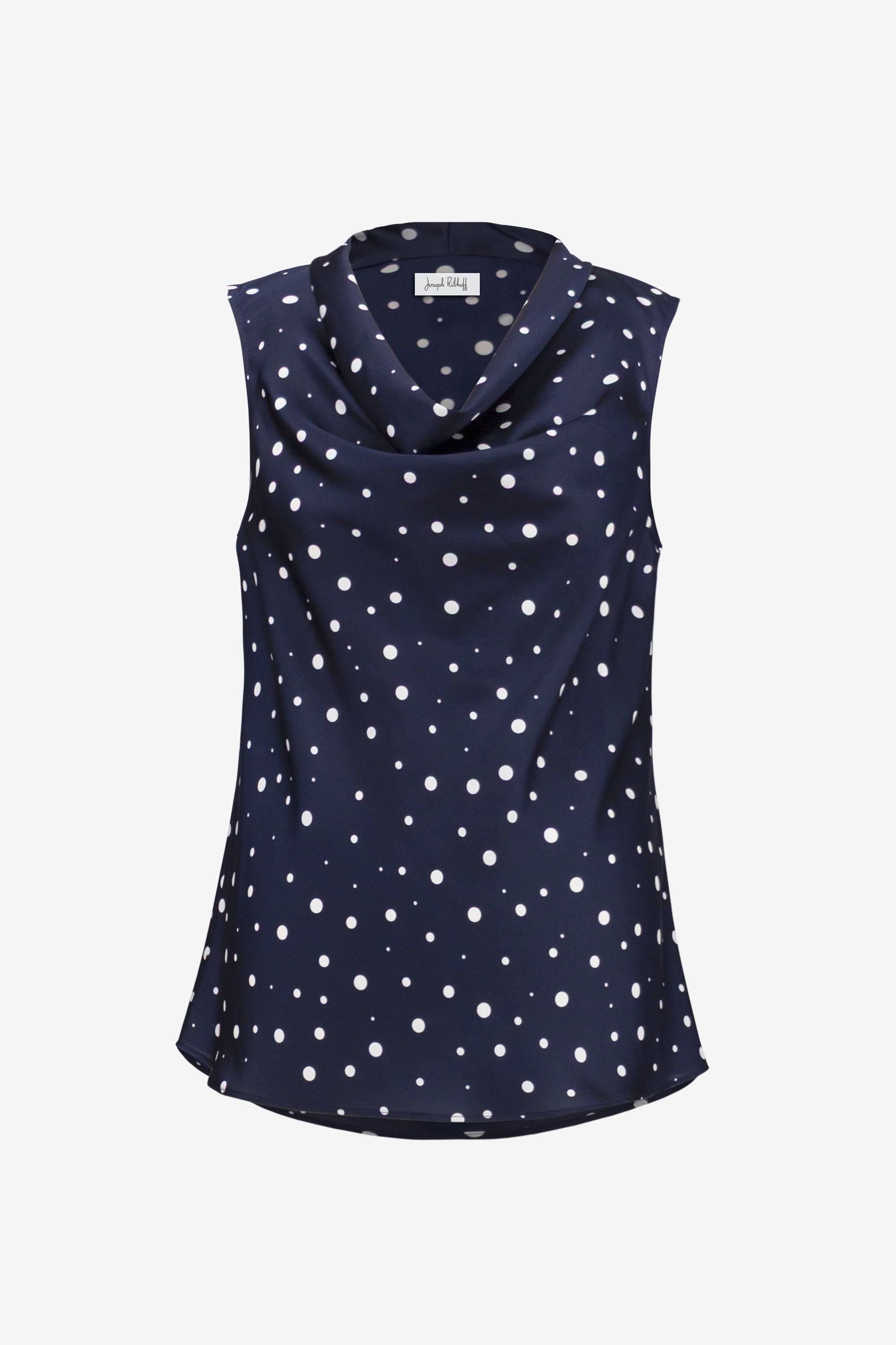 A fluid drape and soft shine come together in this sleeveless recycled satin top, styled with a built-up cowl neckline and all over dot print. Part of the Signature collection.
