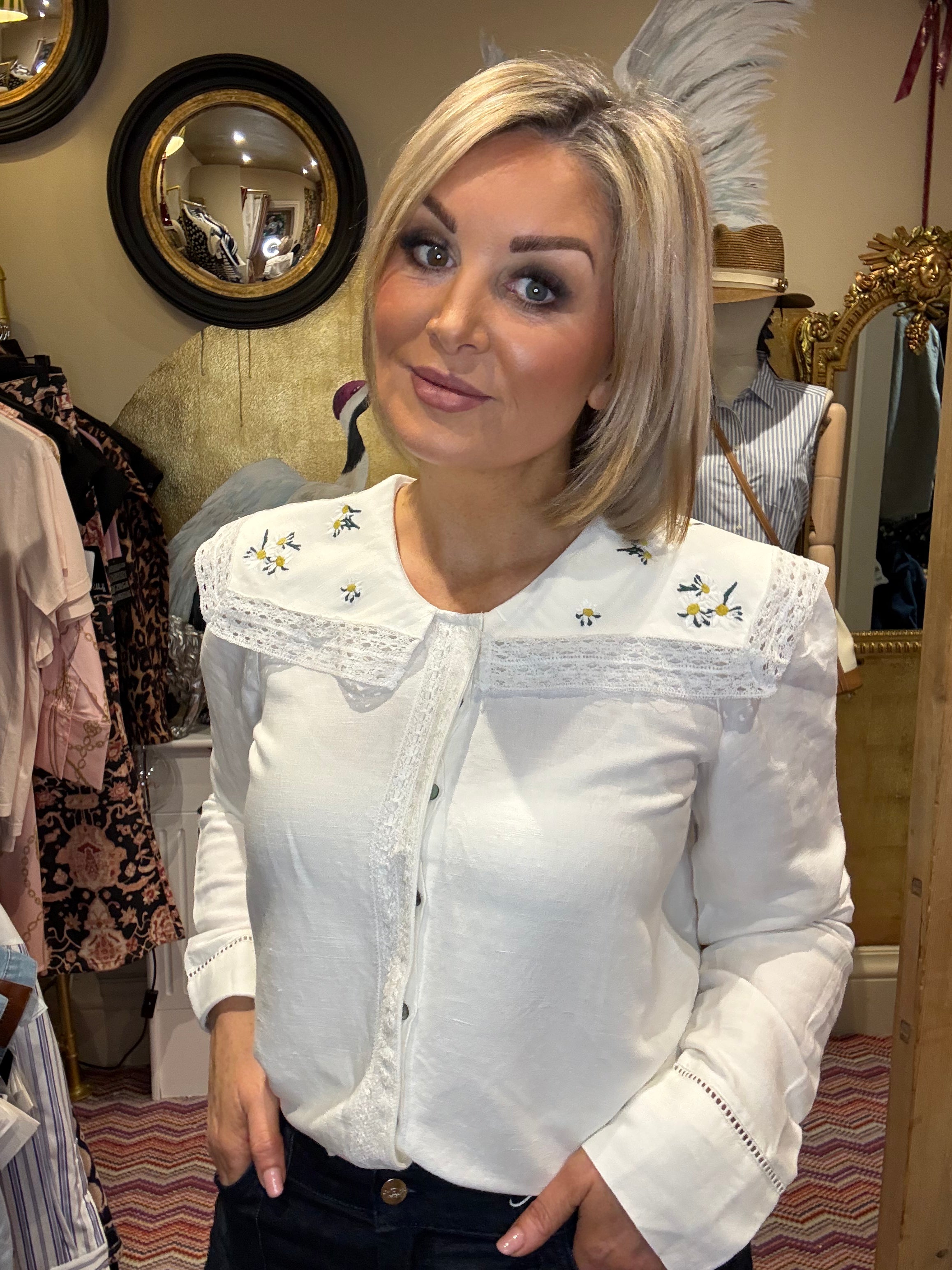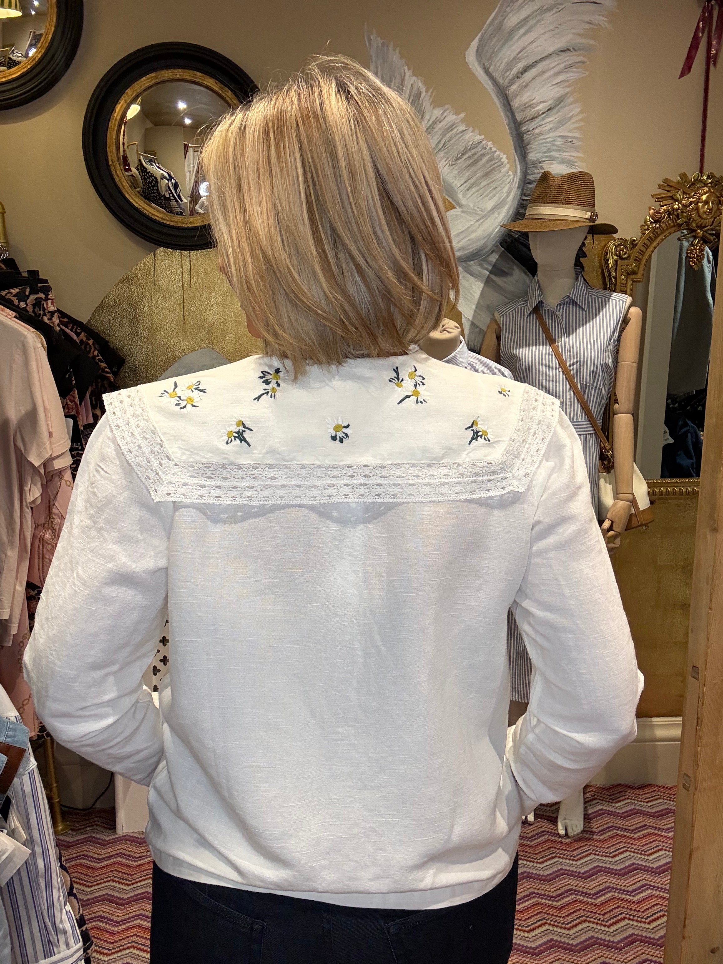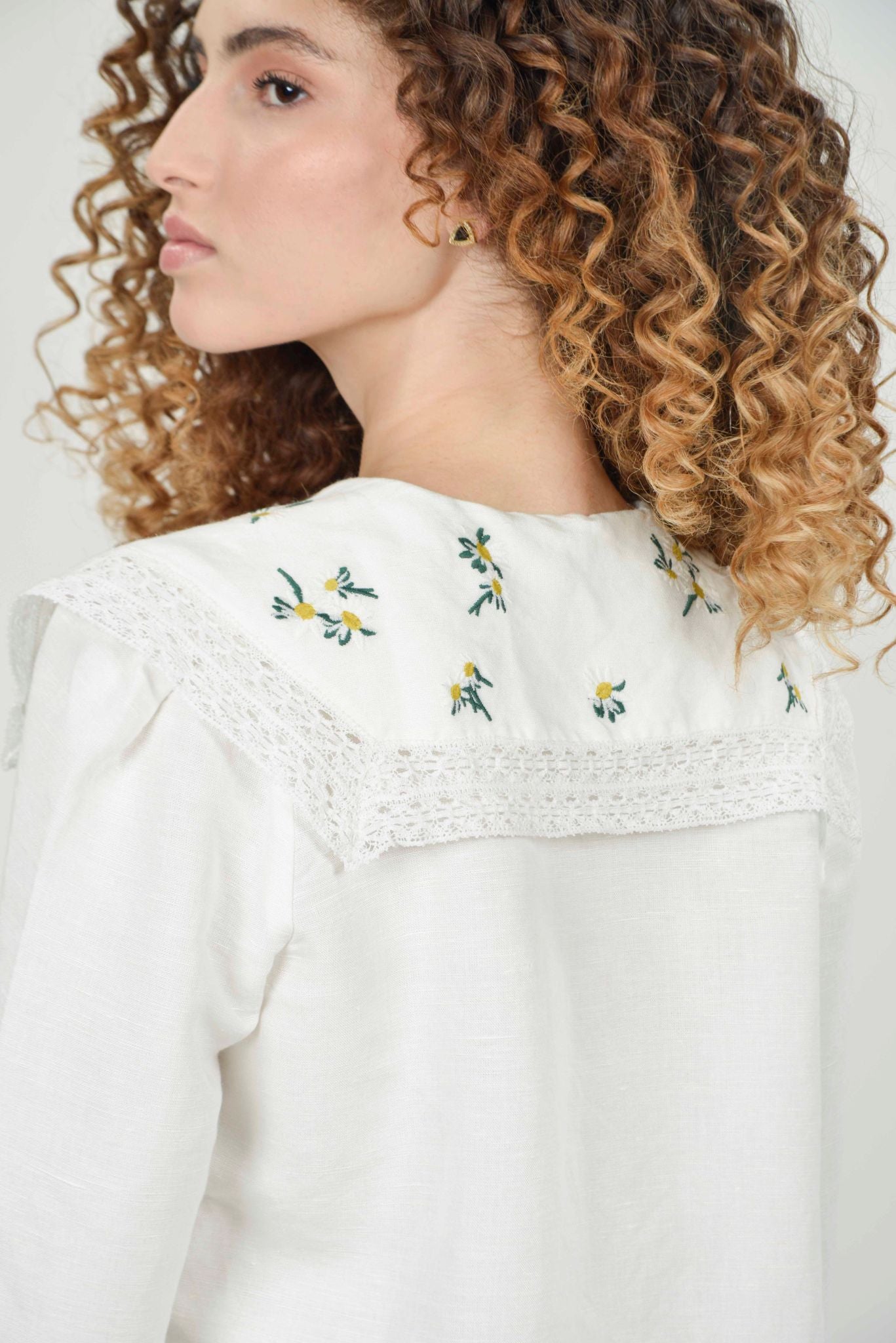 Elevate your wardrobe with the timeless charm of the Simone Embroidery Collar. This exquisite piece features intricate embroidered detailing that adds a touch of sophistication to any outfit. Perfect for layering over dresses, blouses, or sweaters, it instantly transforms your look with artisanal flair. Whether you're dressing up for a special occasion or adding character to everyday wear, this collar brings elegance and personality to your style. A versatile accessory that celebrates craftsmanship and individuality.