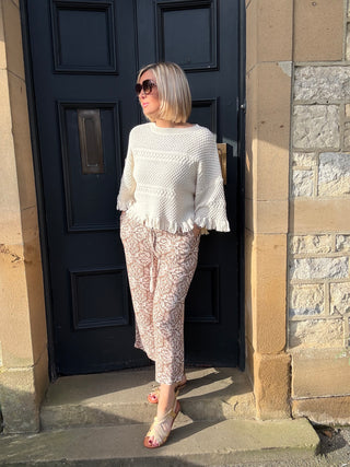 Wide Leg Trouser with Side Tape Detail- Khaki