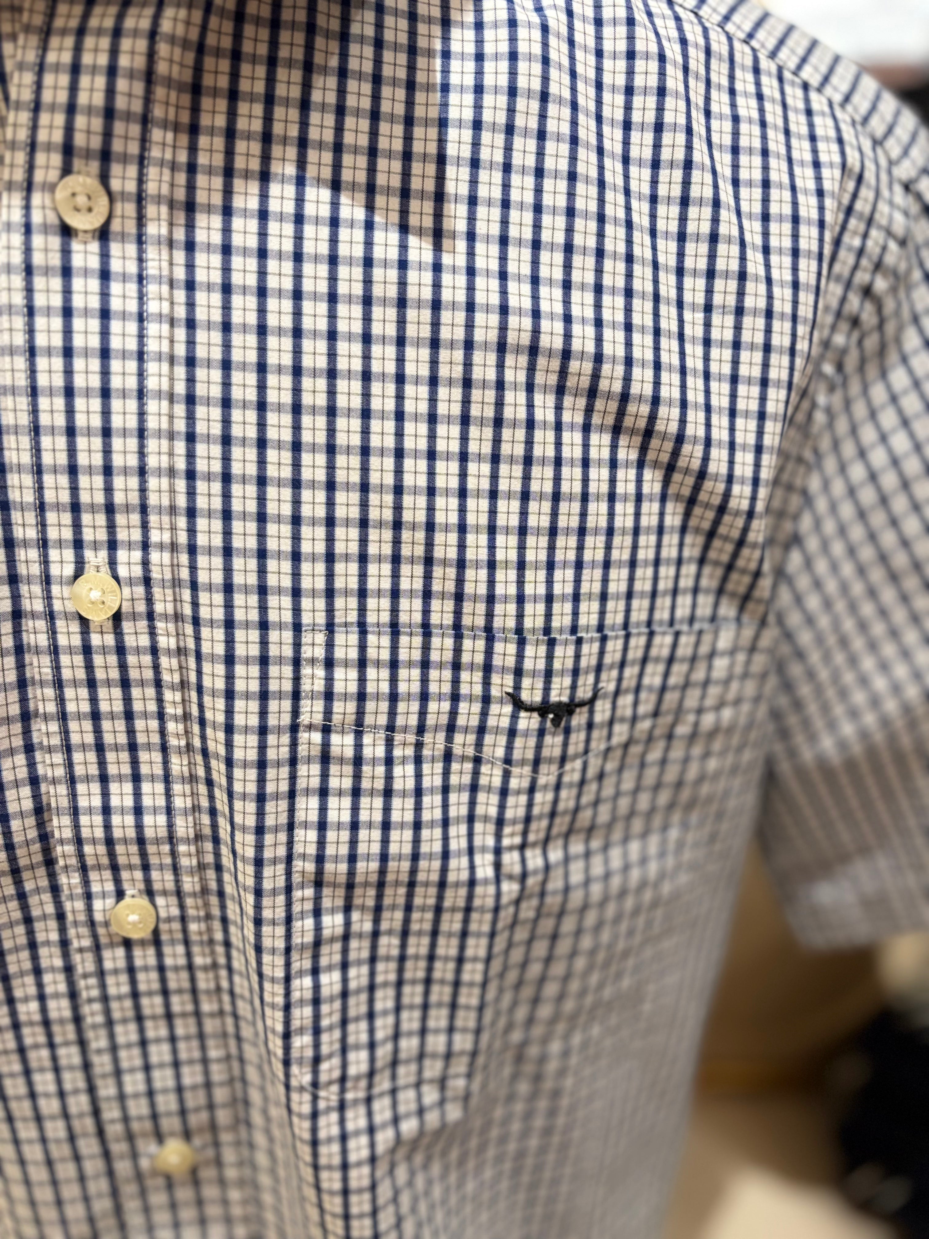 Crafted from organic cotton check poplin, this regular-fit shirt features a front placket with branded buttons, short sleeves, and a chest patch pocket with Longhorn embroidery.