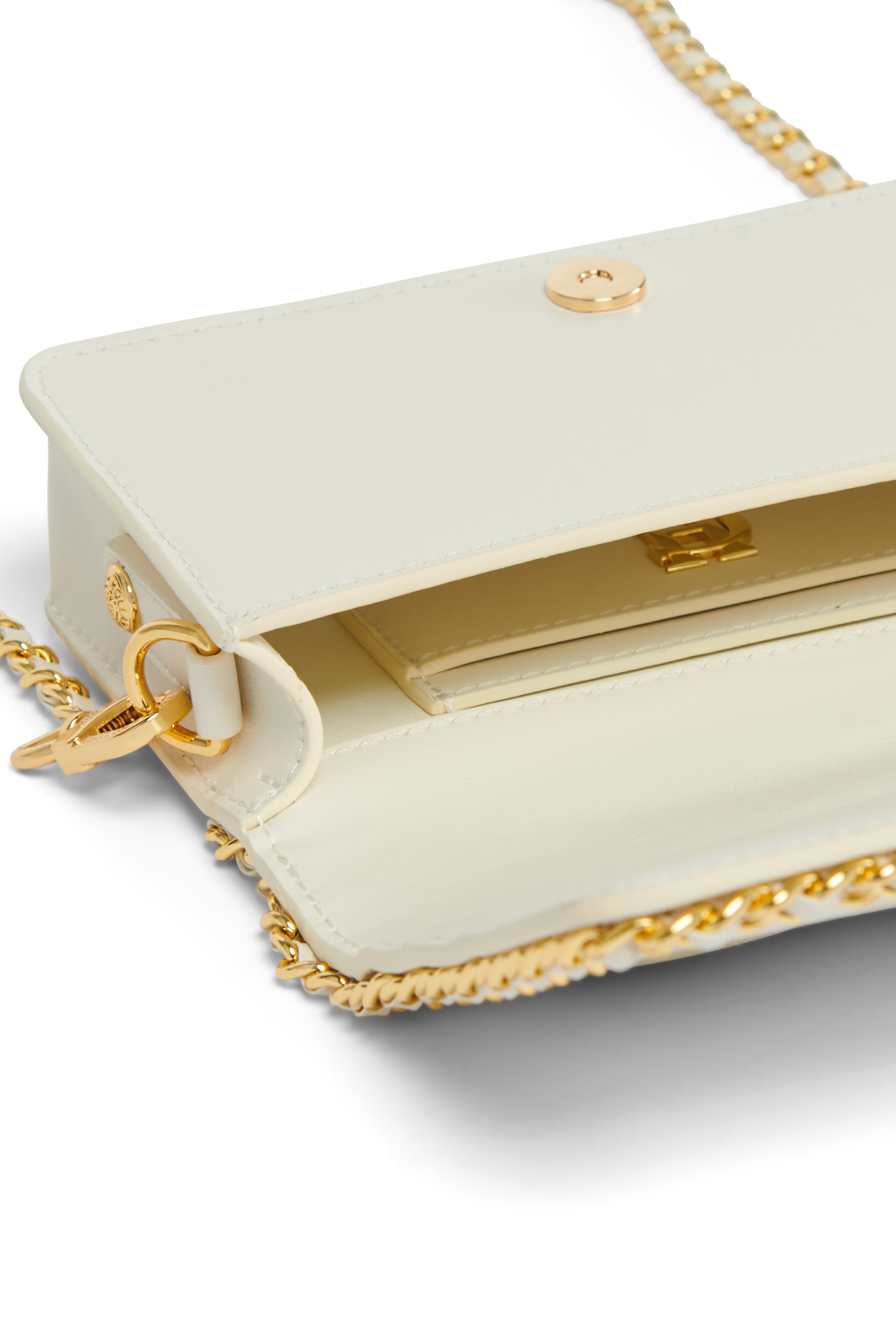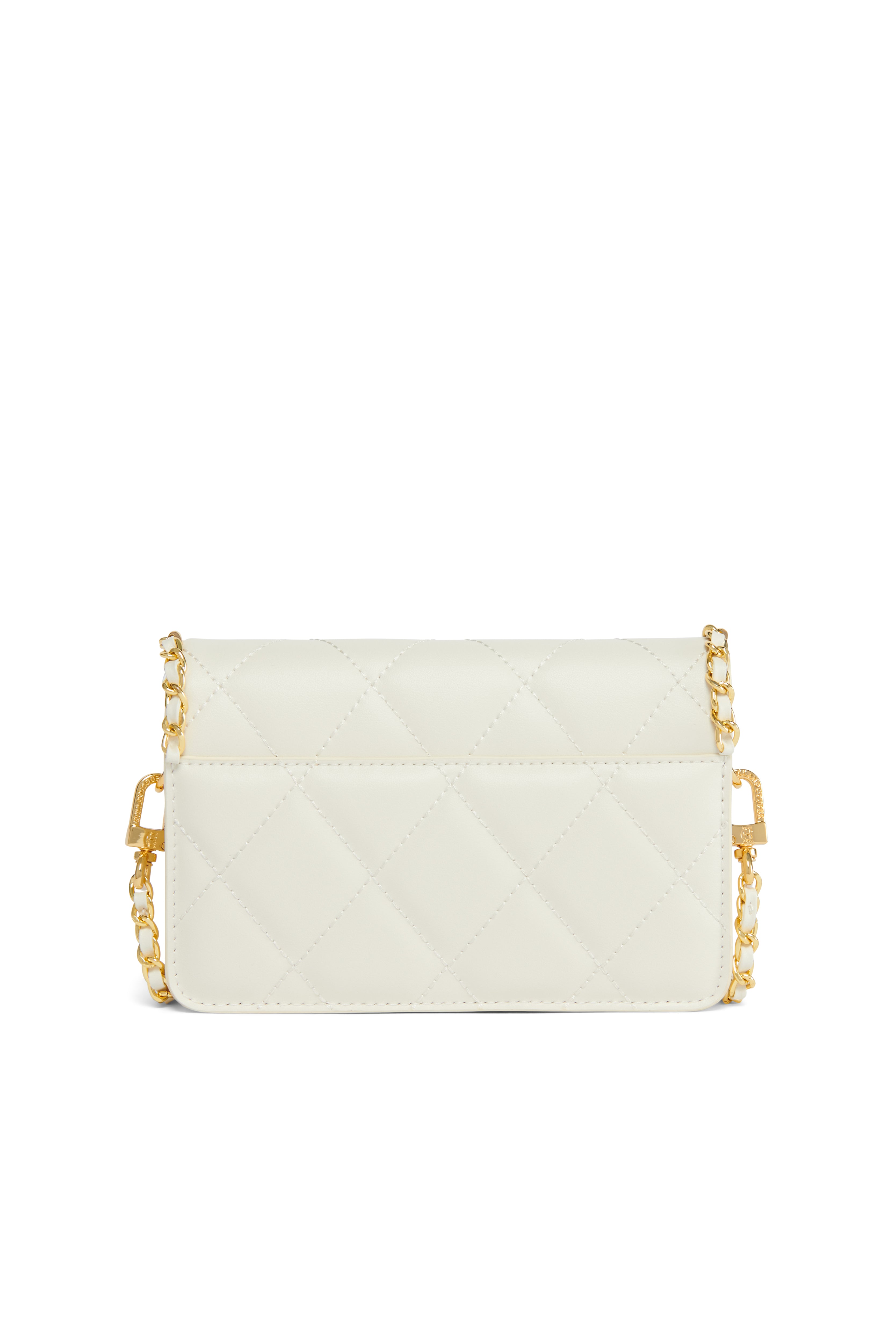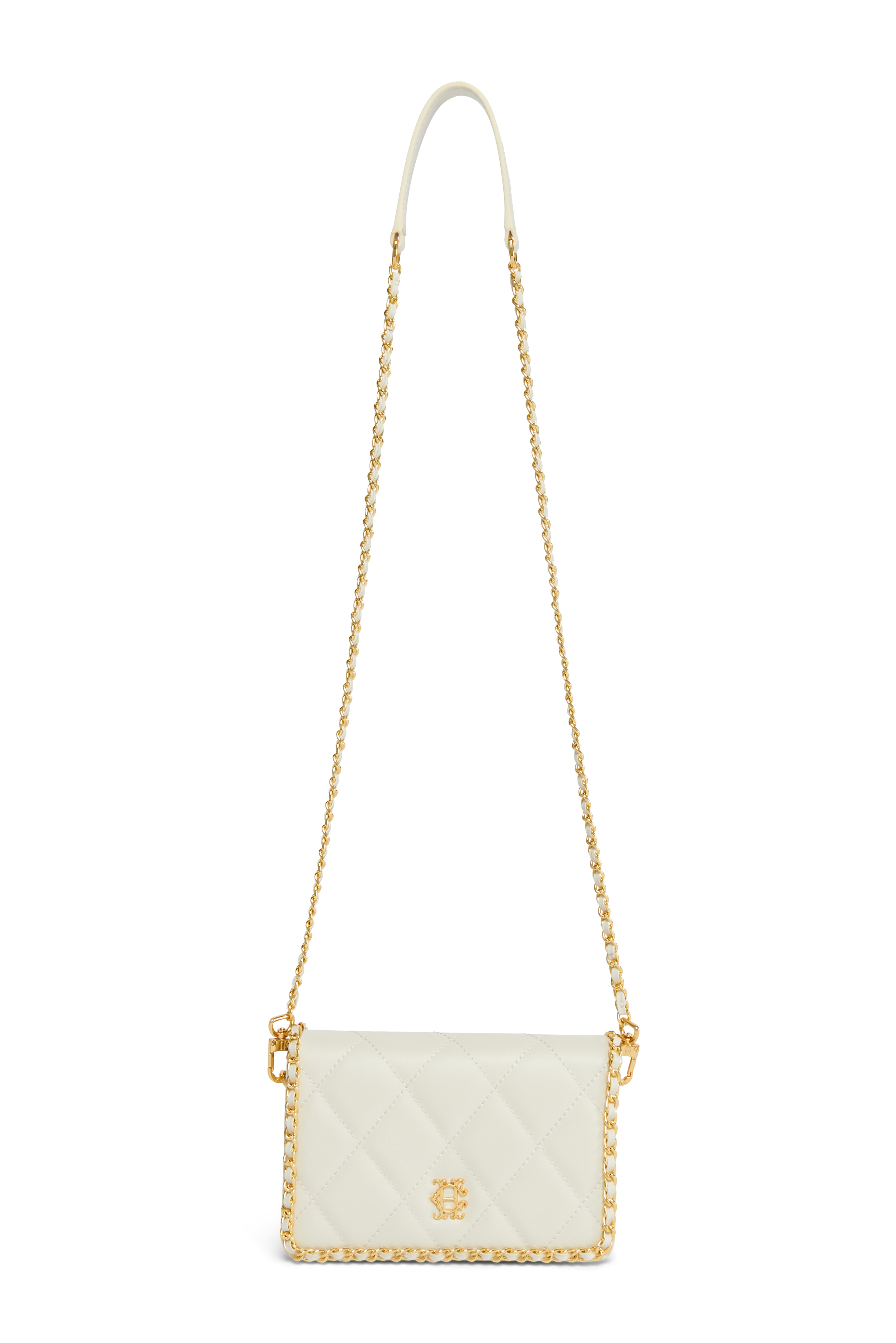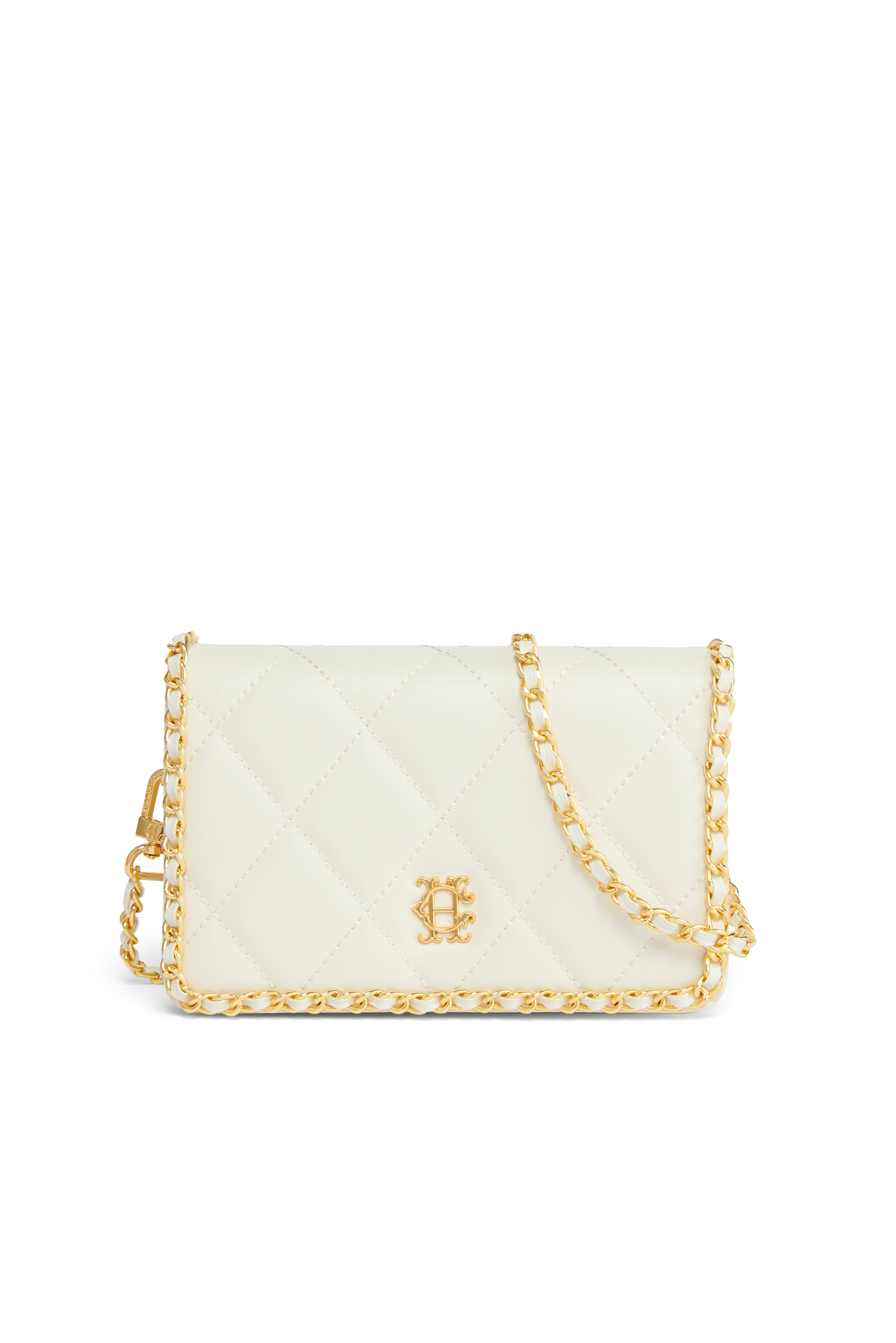 The Quilted Chain Crossbody Bag is a refined statement accessory, designed to elevate everyday styling. Crafted in a structured silhouette with quilted leather, it features elegant chain detailing and a fixed chain strap finished with PU accents for comfort. Adorned with a new chunky heraldic HC pin at the front, this crossbody blends polished styling with enduring, heritage-inspired accents. Size and fit One-Size Details Crossbody with chain detail Fixed chain strap Chunky heraldic pin to front Composition 100% Cow Leather