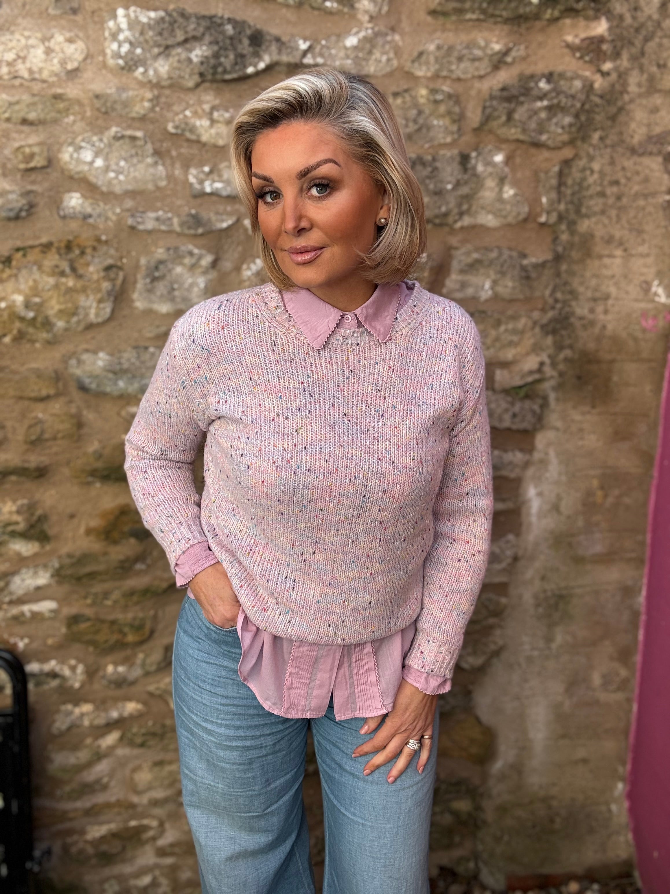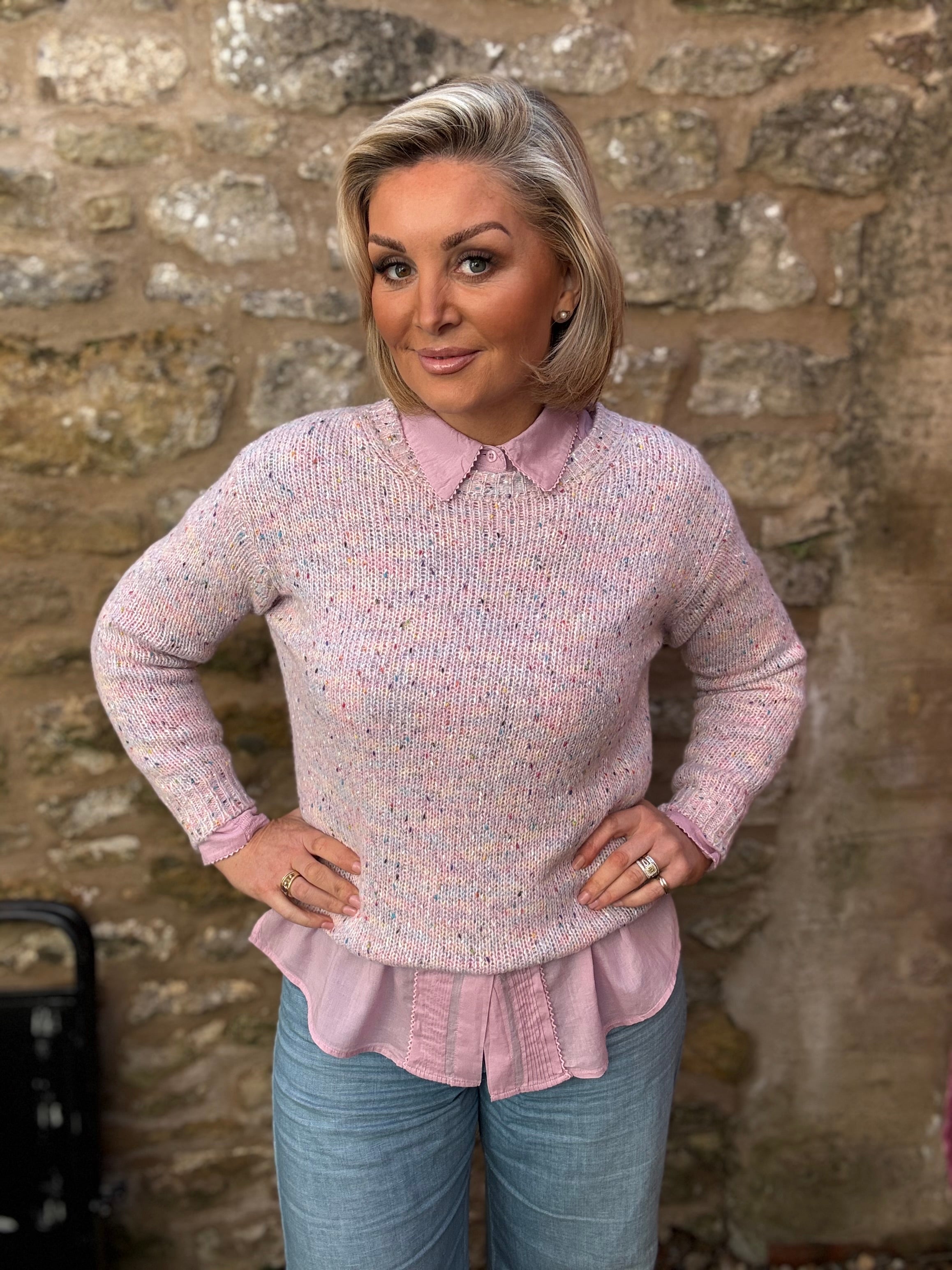 Flecked Italian Wool Blend Knitted Jumper - Pink ONE SIZE 8-18