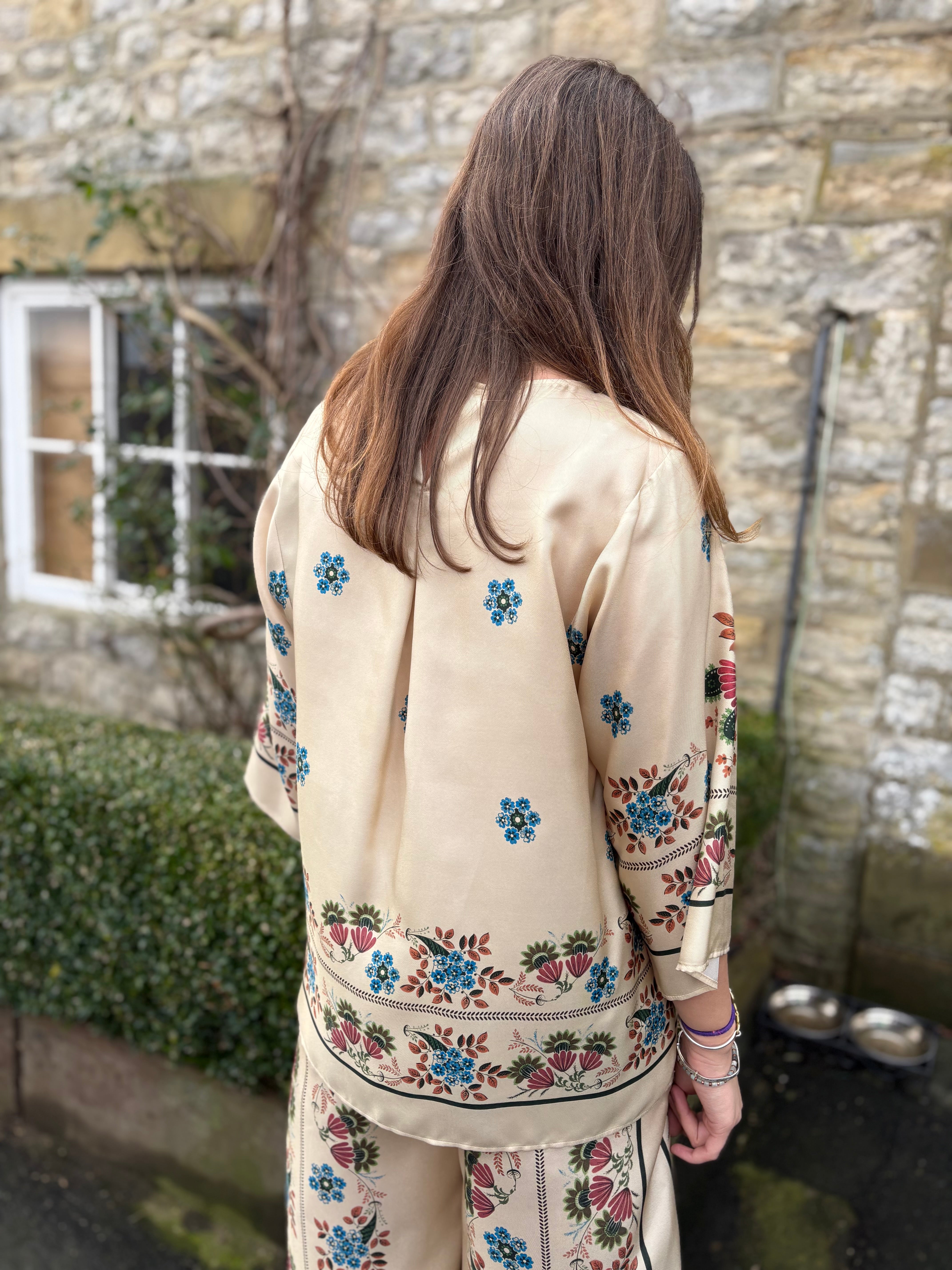 Elevate your wardrobe with this luxurious ivory silk tunic top, crafted from pure 100% silk for a soft, fluid drape. The delicate floral detailing adds understated elegance, making it effortlessly versatile. Pair it with the matching trousers for a polished, sophisticated look. Perfect for those who appreciate quality fabrics and timeless style.