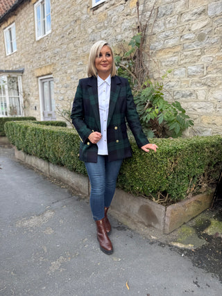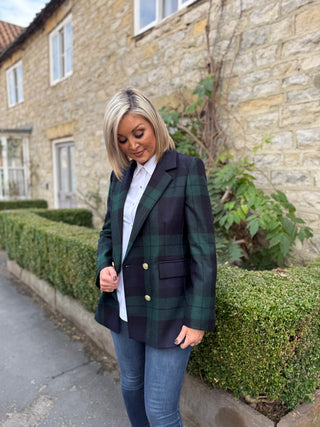 Double Breasted Blazer in Oyster Pin Stripe Linen