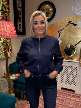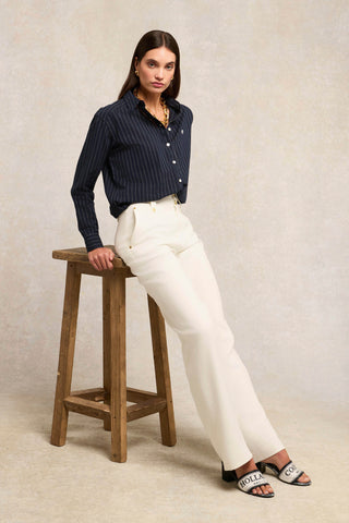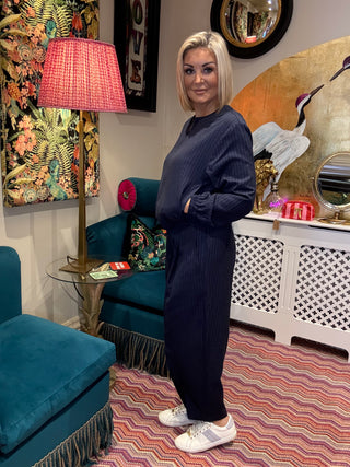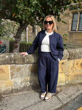 Pinstripe Pleat Front Elastic Waist Trouser Navy