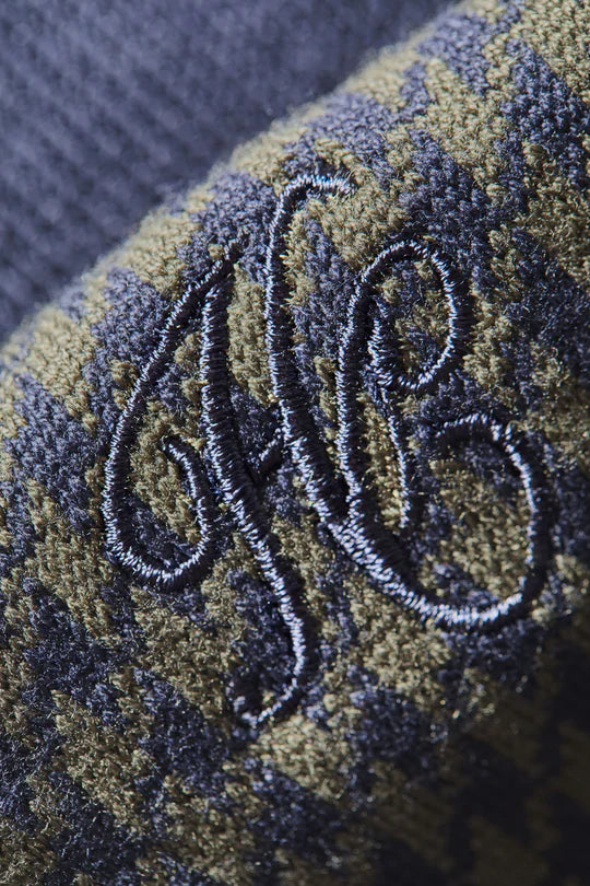 • Navy/khaki houndstooth