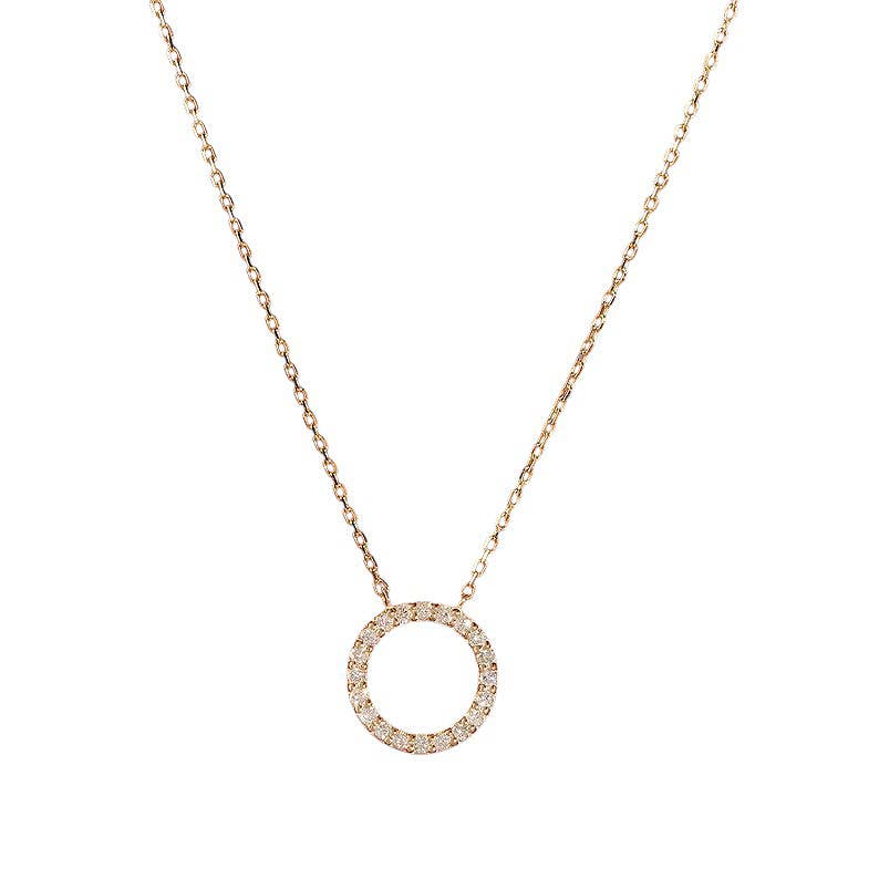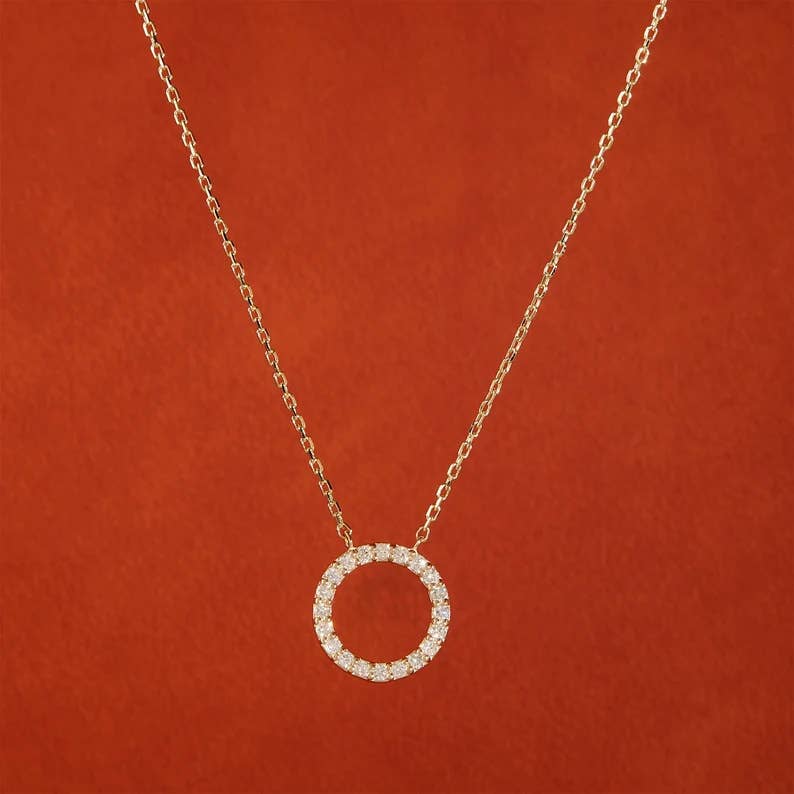 Circular pendant necklace in gold Made from 18kt gold plated brass and cubic zirconia Length 38cm + ext 4.5cm, pendant: 1.2cm Hypo-allergenic (free from lead/nickel/cadmium) A selection of complimentary packaging is sent with all of our orders