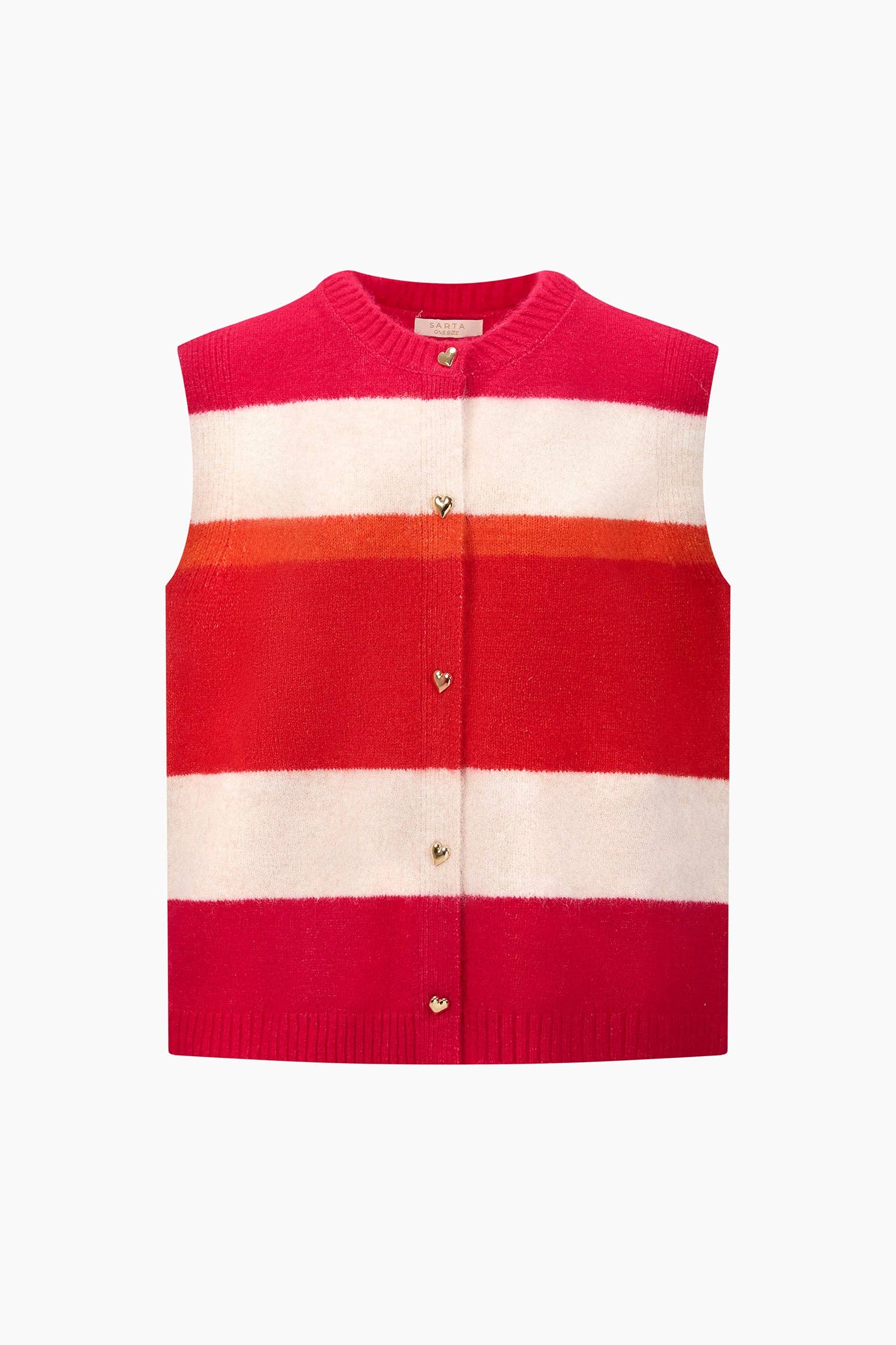 Heart Buttons Striped Sleeveless Vest in Red: One-size (UK 8-18)