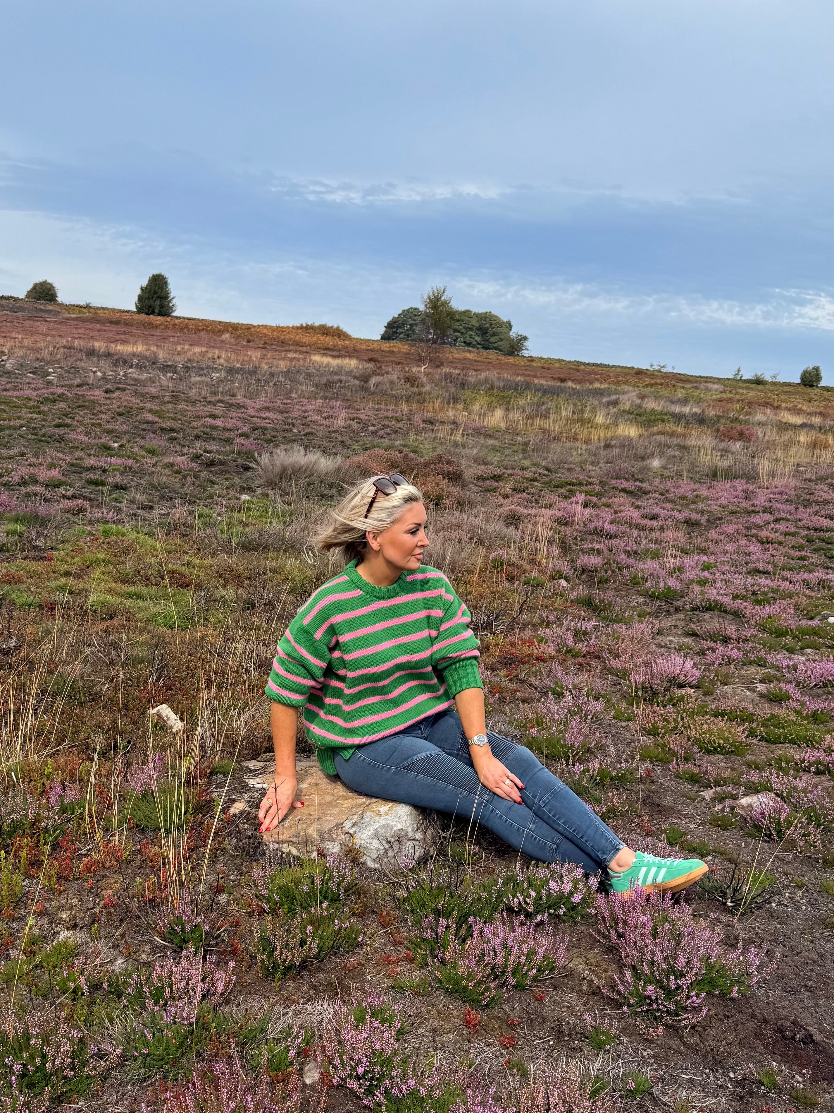 Crowberry Woods' Clarabelle Striped Jumper in Pagoda and Parson Pink is crafted from soft British lambswool and made in Scotland. Designed to offer both warmth and style, this jumper supports local craftsmanship while adding a cheerful pop of color to your wardrobe. It's the perfect cozy layer to keep you comfortable through the seasons.
