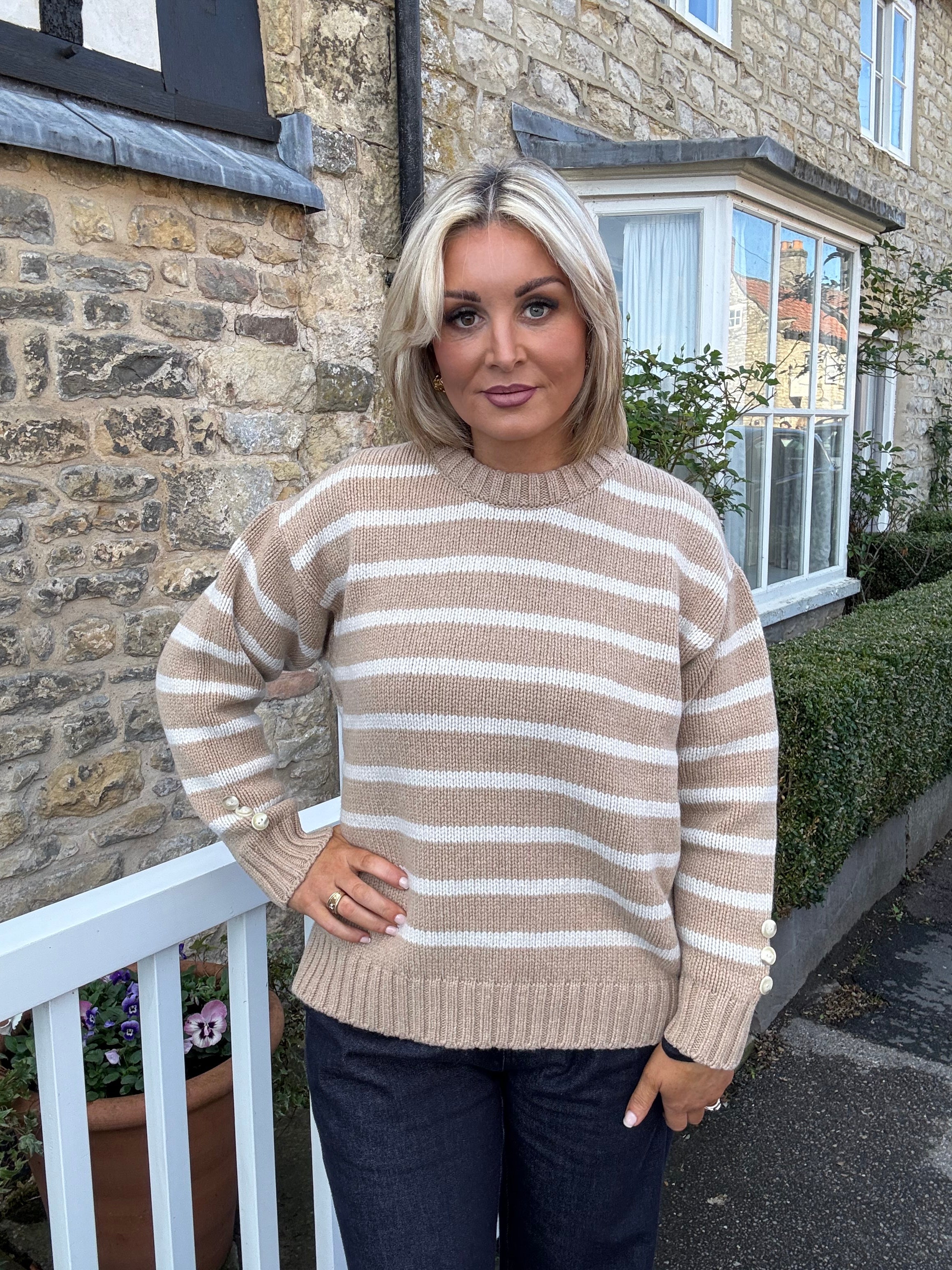 Crowberry Woods' Clarabelle Striped Jumper in Sandstorm and Swansdown is crafted from soft British lambswool and made in Scotland. Designed to offer both warmth and style, this jumper supports local craftsmanship while adding a cheerful pop of color to your wardrobe. It's the perfect cozy layer to keep you comfortable through the seasons.
