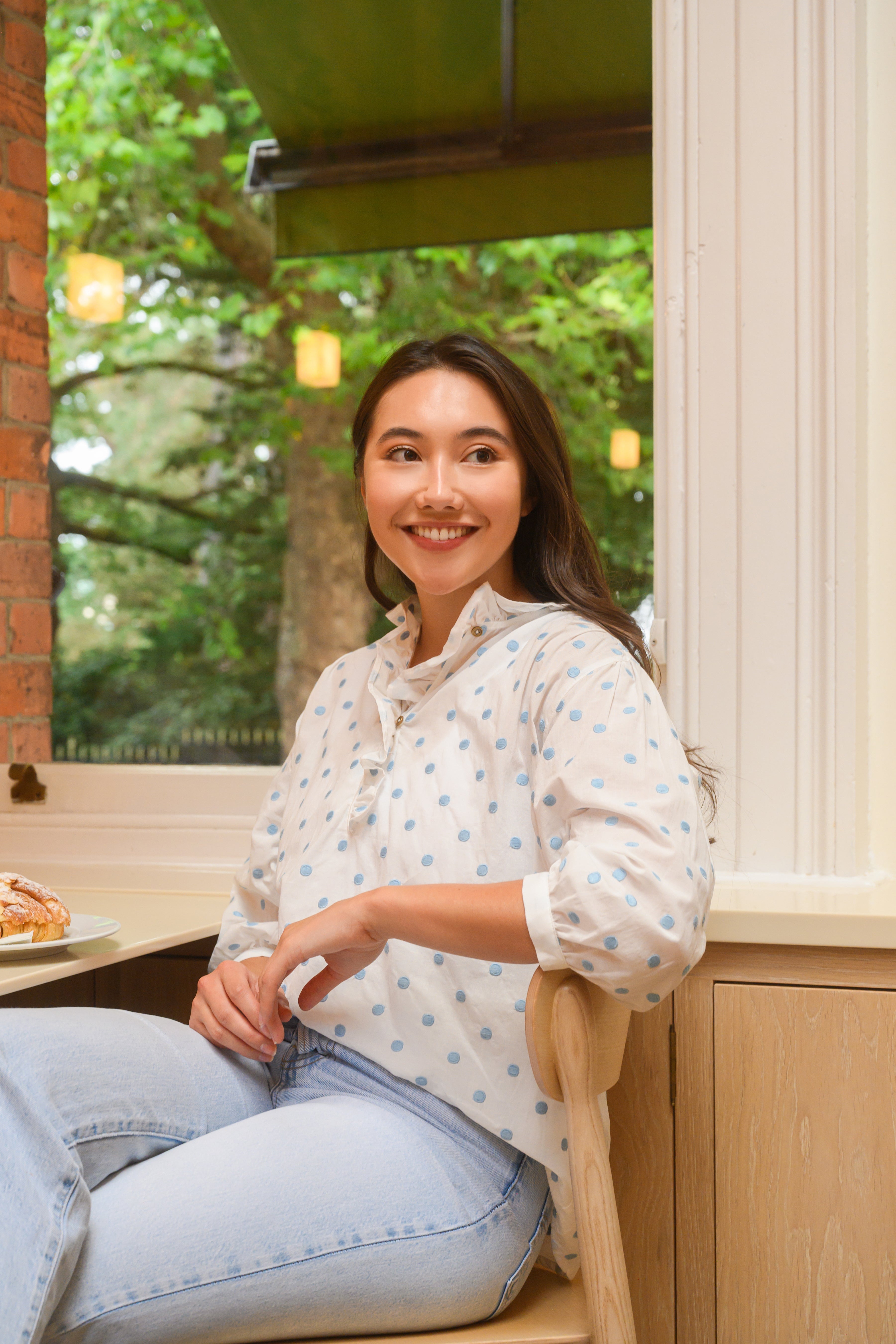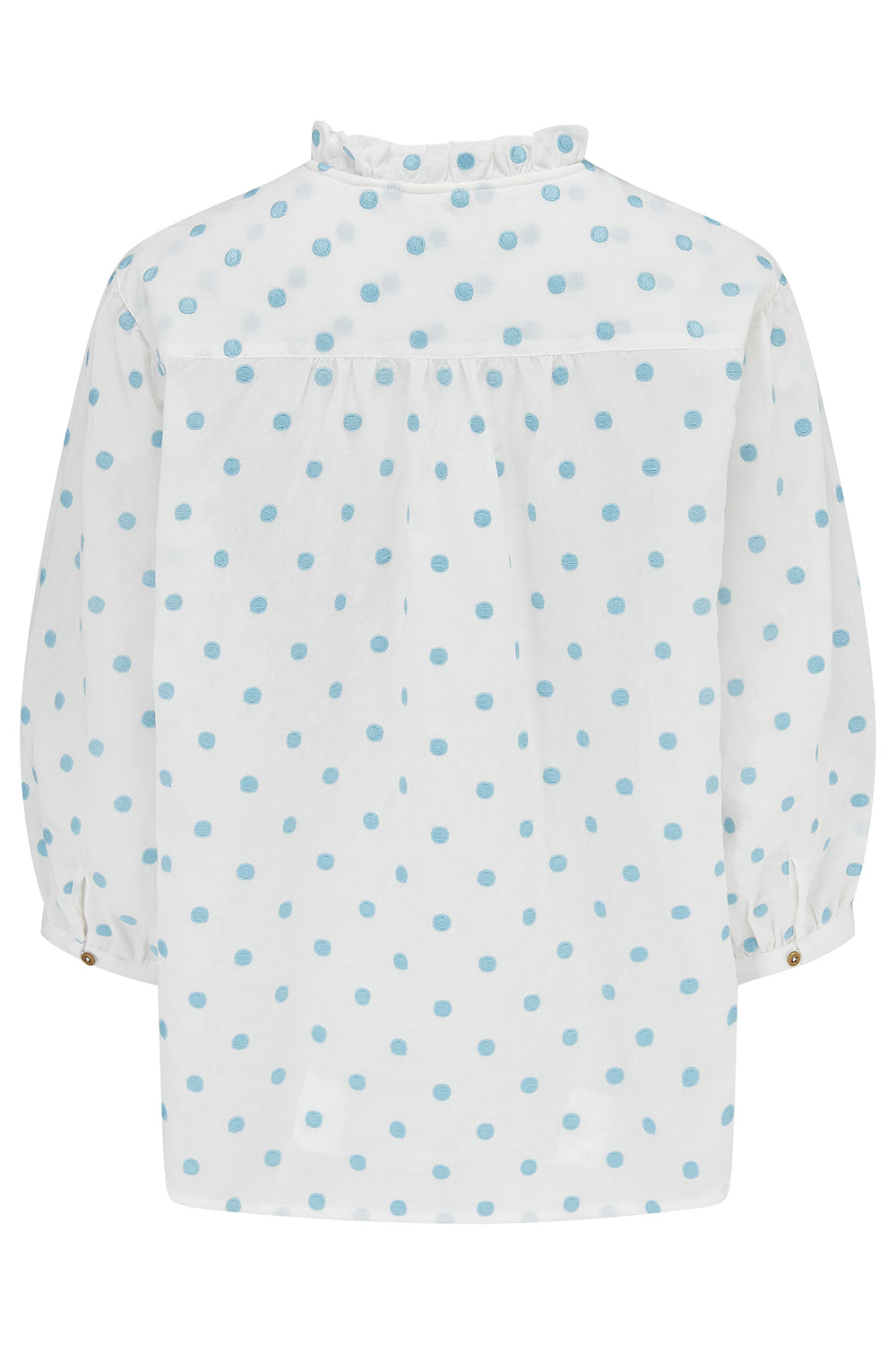 Introducing the Thea Cotton Blouse in a charming blue dot print—your new go-to for effortless style. Crafted from breathable cotton, this blouse strikes the perfect balance between comfort and sophistication. The timeless dot pattern adds a playful touch to any outfit, whether you're dressing it up for the office or keeping it casual for weekend adventures. Versatile, flattering, and endlessly wearable, the Thea is the blouse you'll reach for again and again.