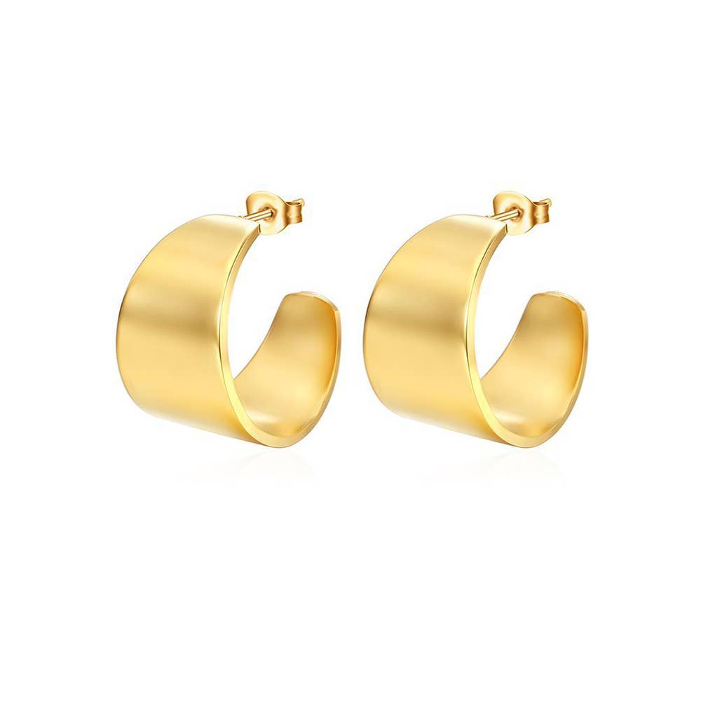 Wide flare hoop earring in gold