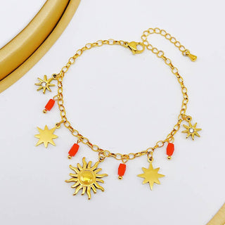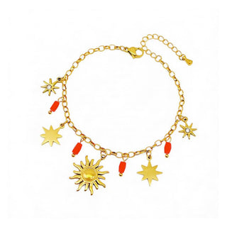 Sun and Star Multi Charm Bracelet in Red & Gold