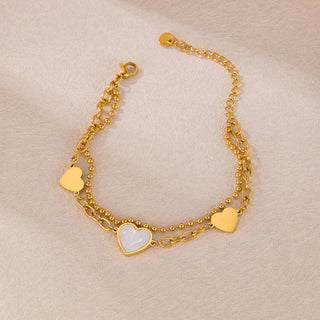 Double Chain Heart Bracelet in White & Gold