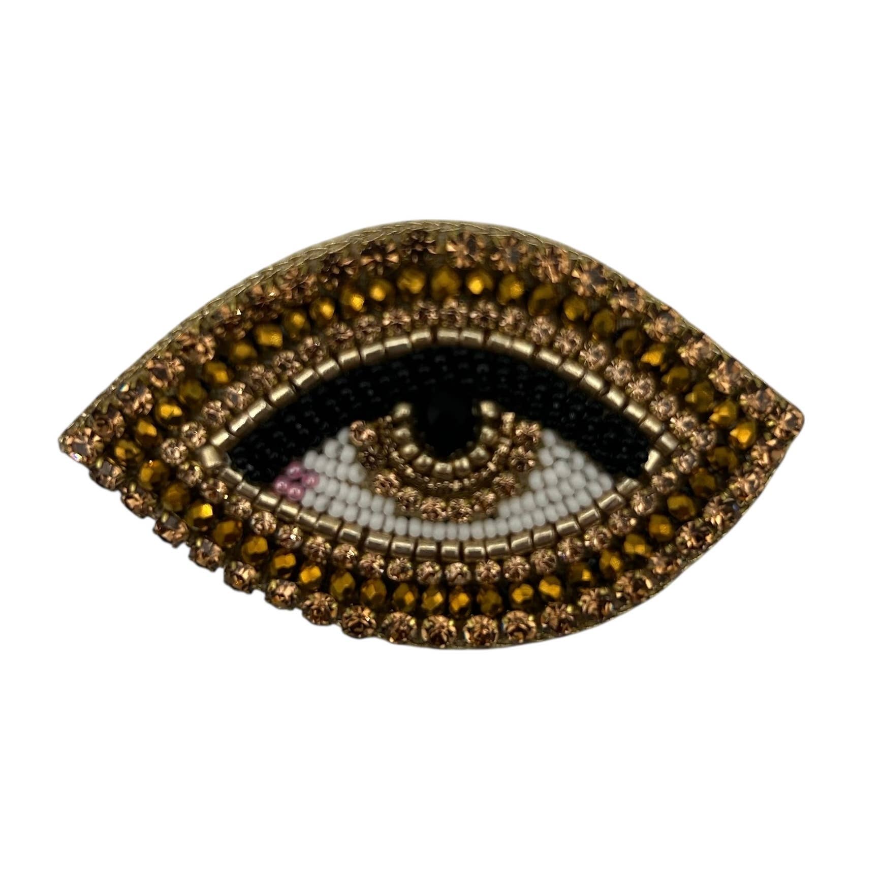 Teal stripe makeup bag & Gold Sparkle Eye brooch