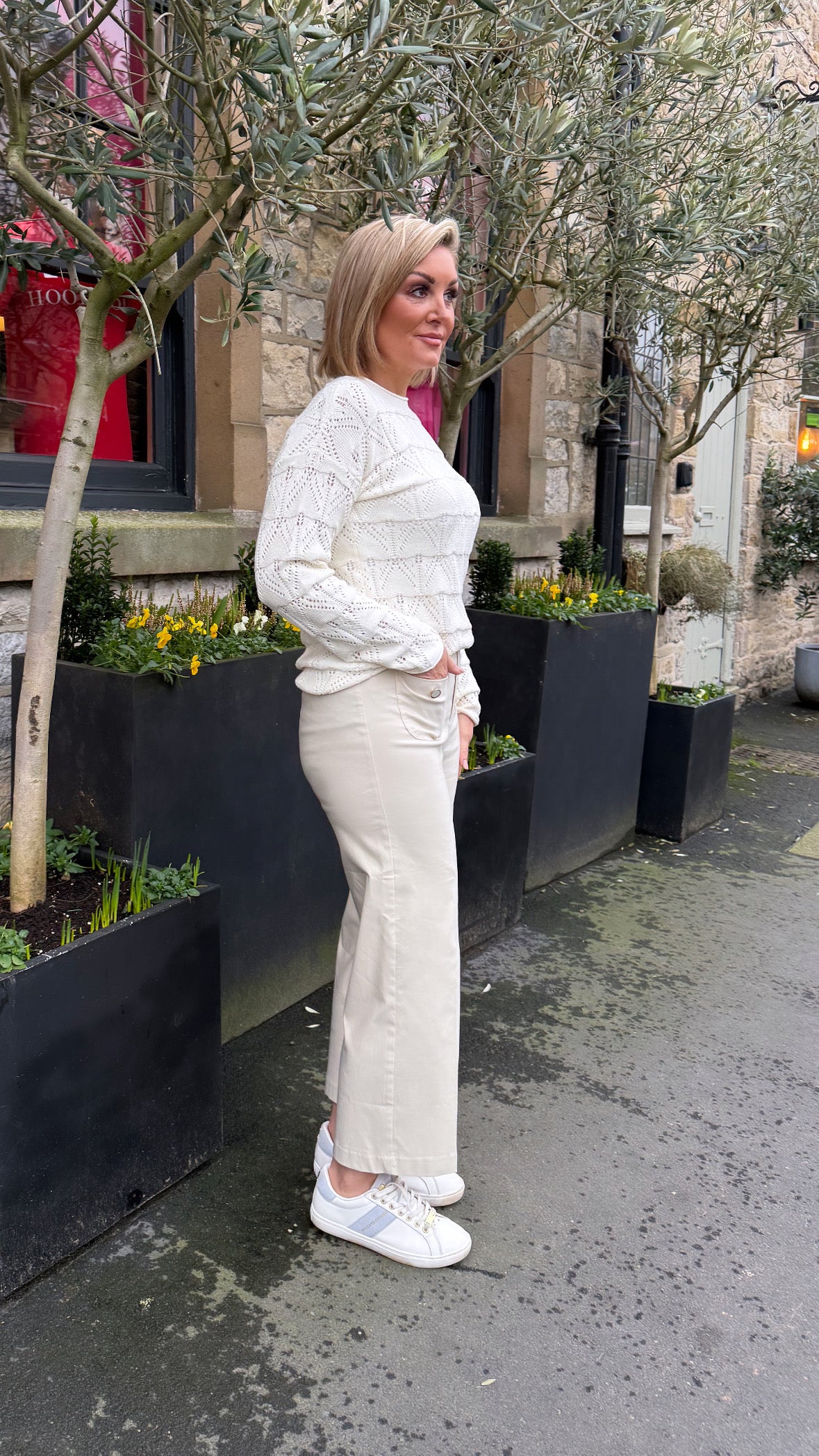 Elevate your everyday wardrobe with these sophisticated wide-leg culottes in timeless ecru. The relaxed silhouette offers effortless comfort without compromising on style, while distinctive button detailing adds a refined touch that sets them apart. Perfect for transitioning from office to weekend, these versatile trousers pair beautifully with everything from crisp white shirts to casual knitwear. The neutral tone ensures they work with virtually any colour palette, making them an essential investment piece for the modern woman who values both elegance and practicality.